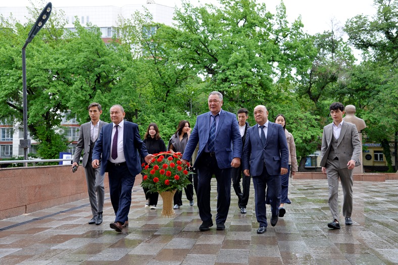 During the event, a laying of flowers at the memorial plaque of Hero of the Soviet Union Malik Gabdullin was held with the participation of Vice Rector for Academic Affairs Bektemesov M.A., Chairman of the Veterans Council Almukhambetov B.A. and Advisor to the Rector of Abay KazNPU Zhunibekbayev J.E.