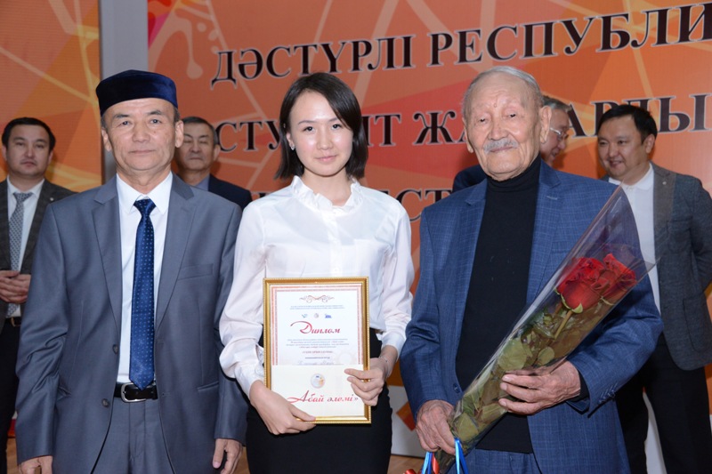In the nomination "Abai olenderi" the third place was taken by the student of Abai KazNPU Abdyeva Shattyk, the student of Taraz State Pedagogical University Zarkhat Akerke became the second place winner, the honorary I place was taken by the student of Shakarim State University Sailaubekova Alina.