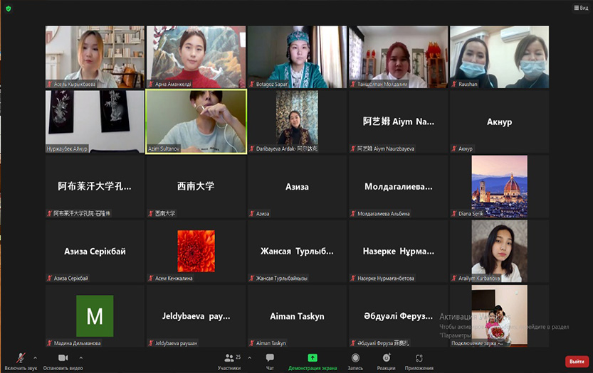 In November 2021, at the Faculty of Oriental Studies, the Department of Translation of Oriental Languages of KazUIR & WL named after Abylai Khan and the Confucius Institute at this university, the decisive stage of the competition for the expressive reading of words of edification and other works of Abai in Kazakh and Chinese languages among students studying at the department of Chinese at universities of Almaty took place. Dedicated to the 30th anniversary of Independence of the Republic of Kazakhstan and the 80th anniversary of KazUIR & WL, the competition consisted of two stages, in which students who received the highest marks showed their skills. The event was attended by students of al-Farabi KazNU, Abai KazNPU, KazNWTTU and the International Kazakh-Chinese Language College.