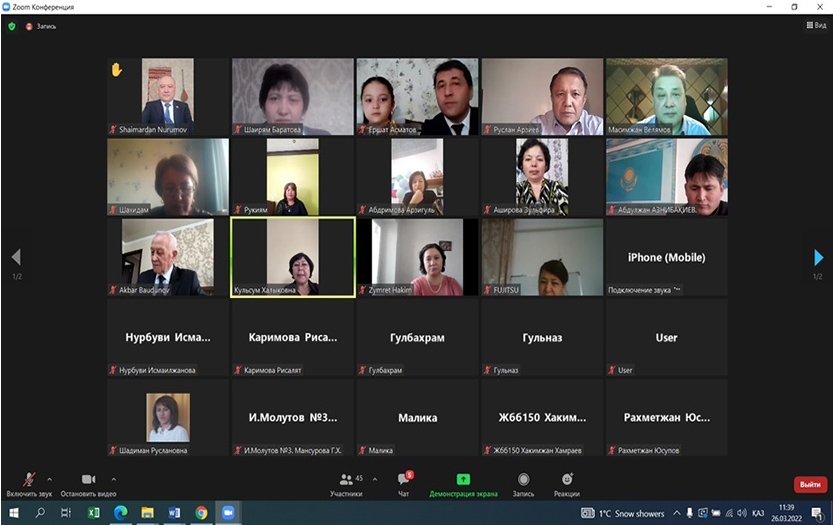 The aim - acquaintance of foreign and Kazakh scientists, devoted to the creativity of Ilia Bakhtiya, demonstration of friendly relations with poet Mukagali Makataev as a bridge of friendship of the Kazakh and Uigur peoples. The conference was attended by scholars from Germany, Kyrgyzstan and Uzbekistan who shared their views on the work of Ilya Bakhtiya. The head of the chair of oriental philology and translation G.H.Abdrahmanova, senior lecturers, associate professors R.U.Arziev, G.M.Autova, H.V.Masimova, Sh.B.Baratova delivered their reports.