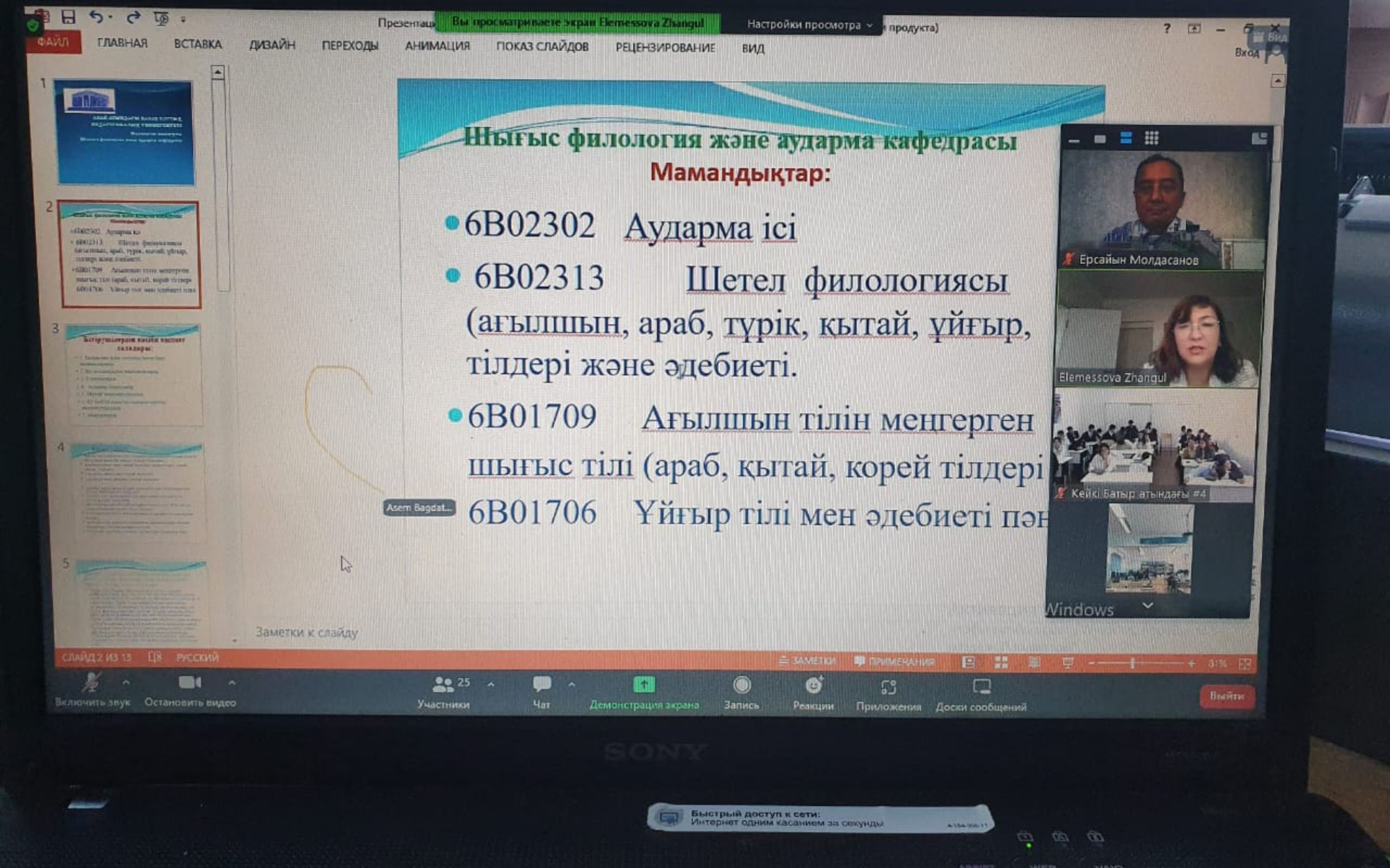 The following school directors took part in the event: G. Zh. Mukasheva - № 4 of Arkalyk, Kostanai region and G. M. Akhmetova - № 156 of Alatau district of Almaty, as well as teachers and graduates of these schools. The 11th graders were given general information about Abai KazNPU, as well as detailed information about the specialities of the Department of Oriental Philology and Translation, and presentations and videos were shown to provide a wide overview of their future professions.