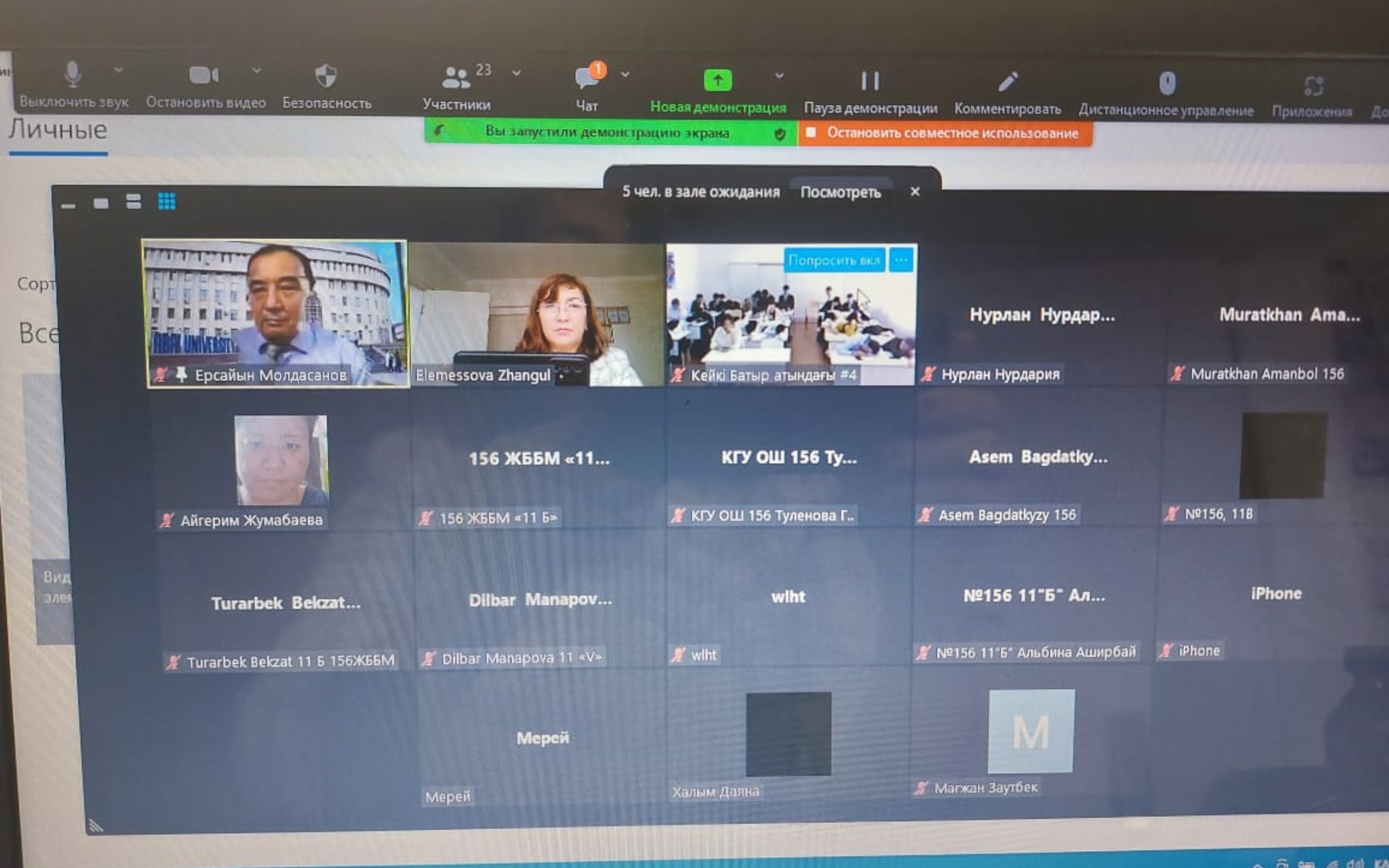 As part of career guidance and implementation of the project «Talapker-2023» senior lecturers of the Oriental Philology and Translation of the Institute of Philology J.M. Elemesova, G.K. Satbay, A.M. Sebdairova held on December 20-21, 2022 an online conference «Prosperity - bolashakkа bastar zhol» for 11 classes on the platform ZOOM.