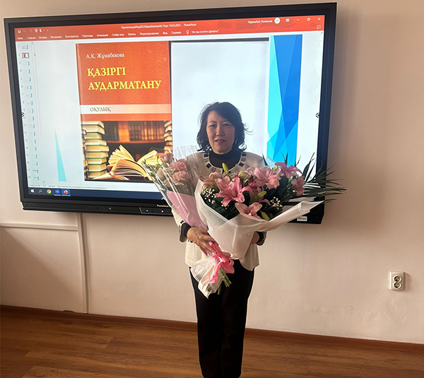On March 17, 2023, a presentation of the textbook on translation studies "Modern Translation Studies" took place at Abai University. Its author is Doctor of Philology, Professor of the Chair of Oriental Philology and Translation of the Institute of Philology, Corresponding Member of the National Academy of Sciences of the Higher School of Kazakhstan (NAS HSK), Aigul Kazkenovna Zhumabekova.