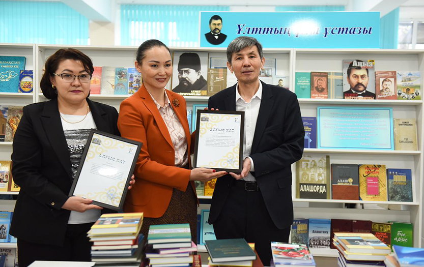 The director of the Institute of Philology Alua Tanzharykova expressed her gratitude to the head of the A.Baitursynov Institute of Linguistics Anar Fazylzhanova and noted that although today is the time of digitalization, books of traditional type have a special place in the development of students, expanding knowledge and helping to qualify as a future teacher. The director of library of Abai KazNPU Imansydykova Nurgul has paid attention that the library of Institute of Linguistics is very rich in manuscripts and books and is one of few scientific institutions which let out new editions under the authorship of their scientific employees. Nazim Konkabaeva, Head of Oriental Philology and Translation Department of the Institute of Philology, underlined that among the activities carried out at the department level, great importance is given to replenishing and renovating the book collection, and thanked the scientists of the Institute of Linguistics for presenting such excellent scientific works.