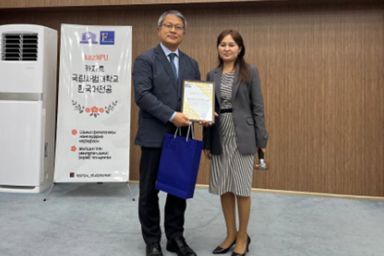 On October 20, 2023, the first stage of the oral Olympiad among students studying Korean language was held for the first time in Abay KazNPU. 23 students of 2 and 3 courses of speciality "Teacher of Oriental (Korean) language with knowledge of English" and "Foreign language: two foreign languages" of the Institute of Philology took part in the competition. Before the competition, the head of the Department of Oriental Philology and Translation N.N. Konkabayeva addressed the students and wished them good luck and thanked the jury members on behalf of the university. The competition was evaluated by specially invited guests: Yoo Byung-soo - General Director of Union Partnership Company;