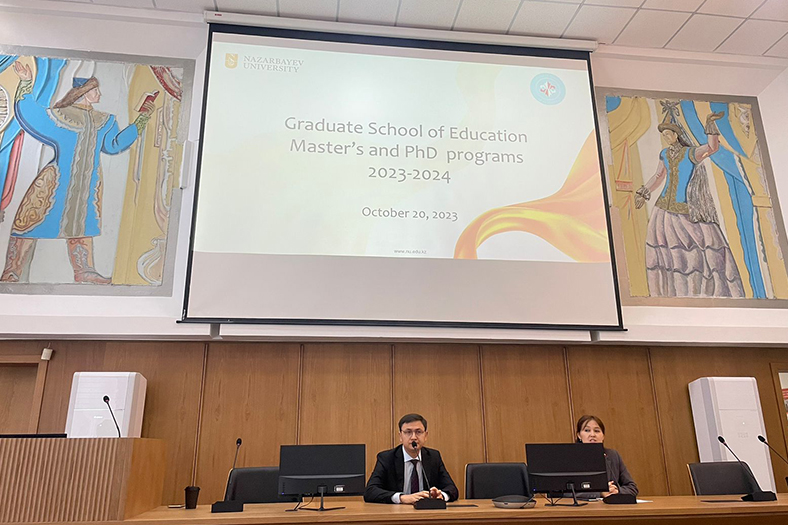 On October 20, 2023 a meeting with representatives of the Higher School of Education of Nazarbayev University was held in Abay KazNPU. The event was organised by the Head of the Department of Oriental Philology and Translation of the Institute of Philology N.N. Konkabayeva, Head of the Department of Foreign Languages Ivatov S.K. and other teachers. From Nazarbayev University were present Michel Baedeker, Associate Professor of GSE NU, Akerke Ayaganova, Senior Manager of Academic and Student Affairs at GSE NU, Ainagul Nurzhanova, Academic and Student Affairs Manager, GSE NU.