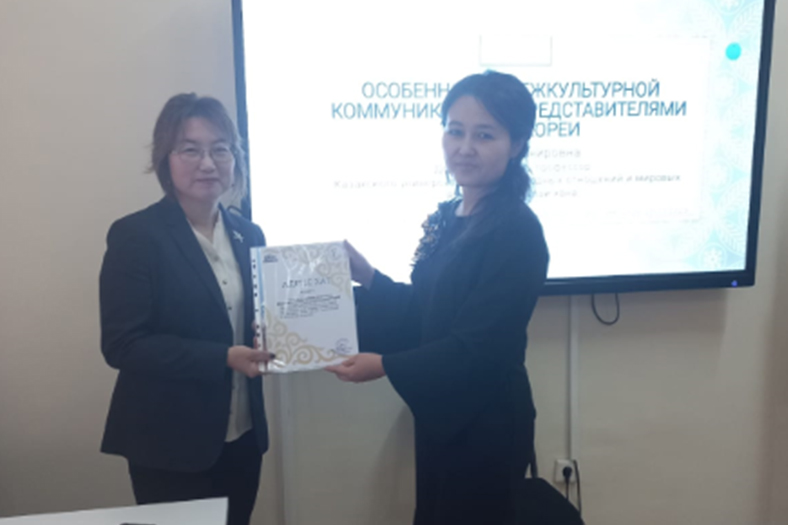 The open lecture was devoted to the topic "Features of intercultural communication with representatives of South Korea". Despite the fact that Kazakhstan and Korea are eastern countries, there is a big difference in the mentality and culture of the two peoples. Students were interested to know the peculiarities of communication with South Koreans, why they behave differently in the same situations, etc. The lecture raised a lot of questions and clarified the peculiarities of Korean behaviour and thinking, which brought our students closer to understanding this nation and this foreign country.