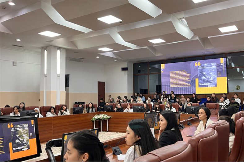 At the end of the meeting, the head of the Chair N.N. Konkabaeva made a thank-you speech and presented guest D. Berikkazhy with a letter of gratitude and a memorable souvenir from our university.