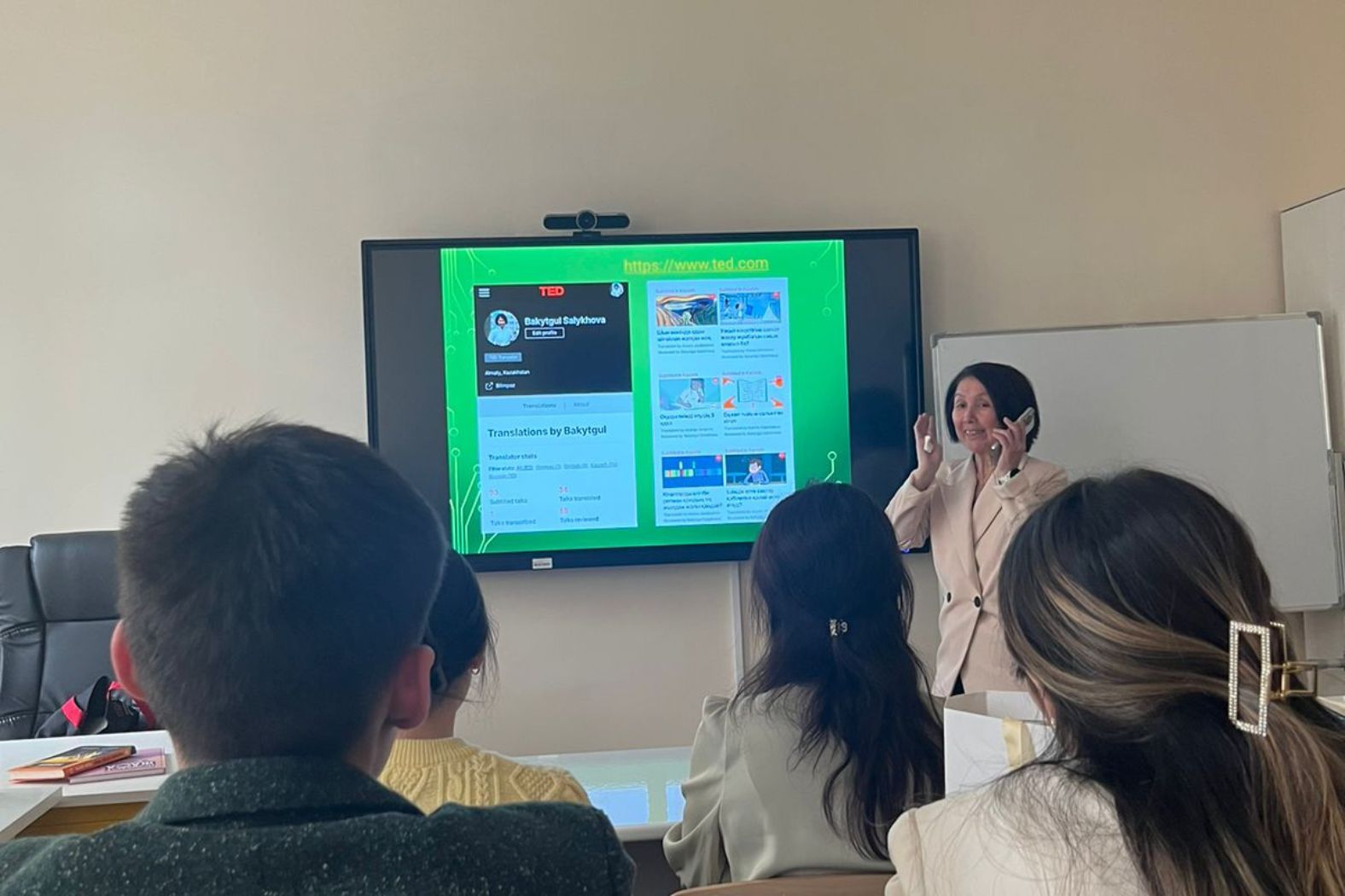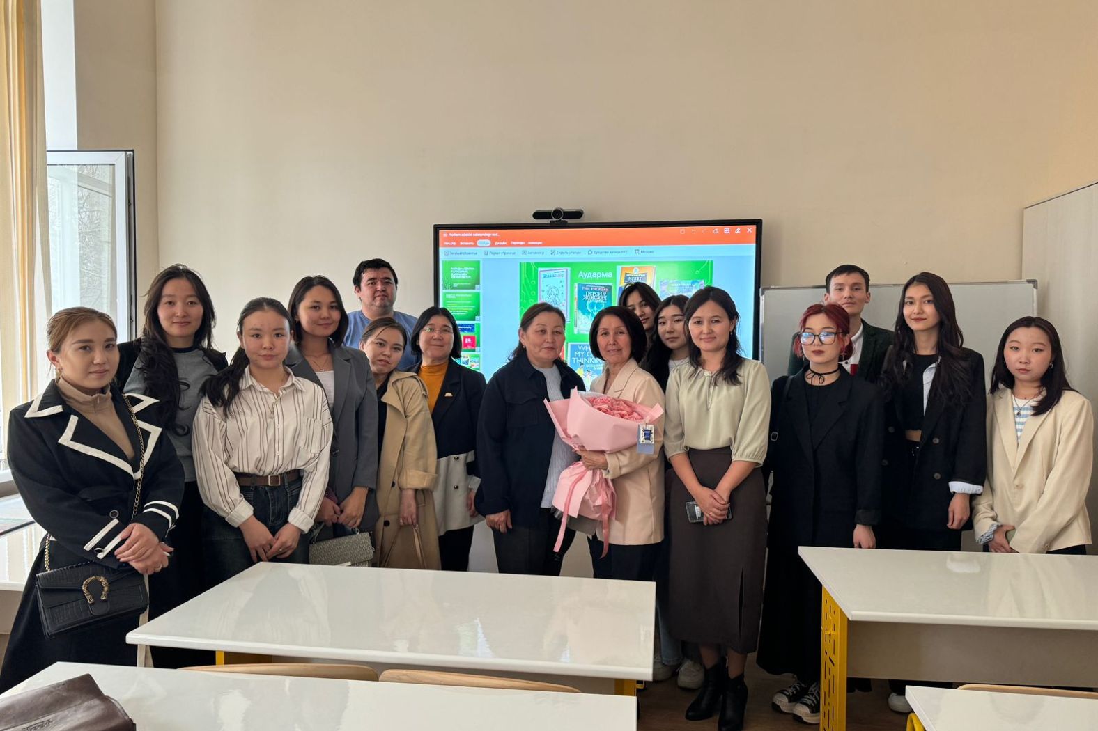 During the meeting, translator B. Salykova focused on the main issues of direct translation from English into Kazakh, as well as methods of preserving national flavor during translation. She spoke about the translation ability to give phraseological units in two unrelated languages. Students` questions were answered. An experienced translator introduced them to published literary books.