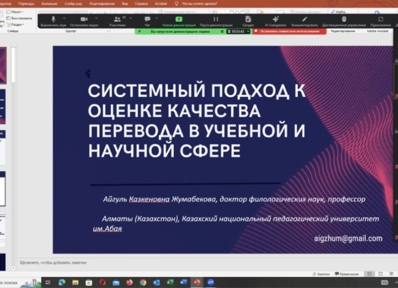 Professor of Abai University gave a course of lectures at the G.V. Plekhanov Russian Economic University Zhumabekova Aigul Kazkenovna, professor of the Department of Oriental Philology and Translation of the Institute of Philology of the Abai Kazakh National Pedagogical University, head of the scientific project of the Ministry of Education