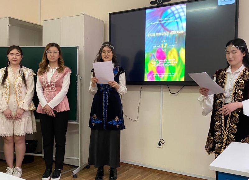 This wonderful holiday was timed to coincide with the celebration of Nauryz, specifically Shanyrak Day on 17 March, as well as the holy month of Ramadan. The programme of the event included slides about Nauryz and Ramadan, songs in Kazakh and Arabic performed by 4th year students, as well as quizzes, which delighted the elderly listeners and they expressed their gratitude. The event was attended by the head of the department K.T. Duisenova, who expressed good wishes on behalf of the management. At the end of the event, an iftar was organised at the department with the support of listeners and students.