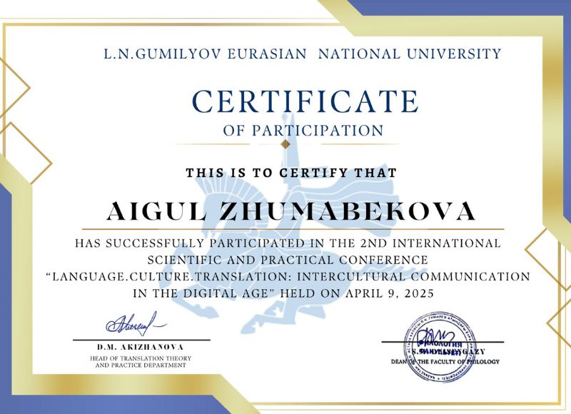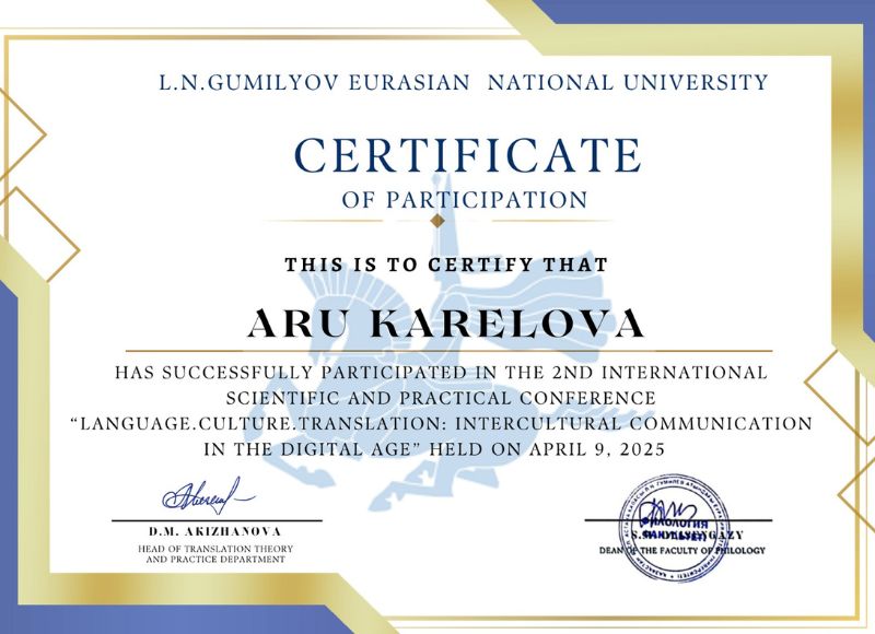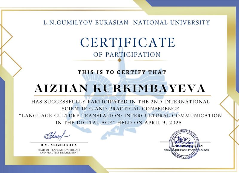 At the II International Scientific and Practical Conference "Language. Culture. Translation: Intercultural Communication in the Digital Age" at the L.N. Gumilyov Eurasian National University the Members of the scientific project presented their reports reflecting the results of the internal assessment of the quality of translation of philology textbooks into Kazakh, as well as containing proposals for improving the assessment of the quality of translation in the scientific and educational spheres.