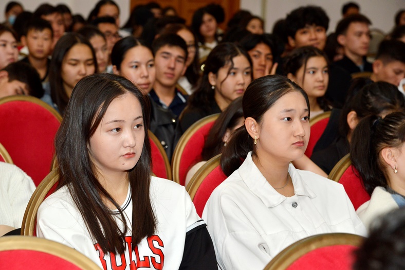 The speaker of the event was Didarbek Dildabek, Director of the Department for Educational, Social Work and Youth Policy, and he highlighted the most important aspects of the message, which help to guide students on the path of self-development, loyalty to their people and justice.