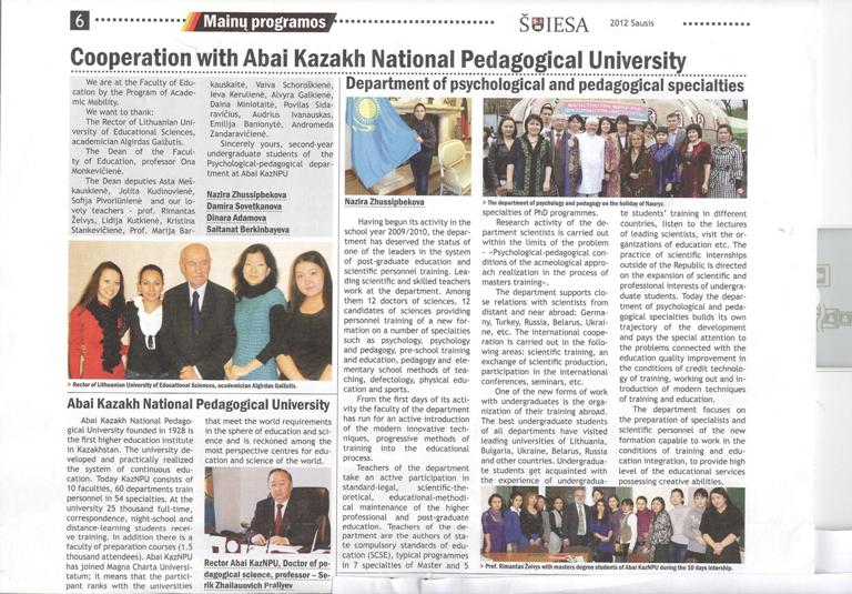 Литвалық   эдукологиялық  педагогикалық  университеті   өздерінің  газетінің  бір  бетін   біздің  университетке  арнады.