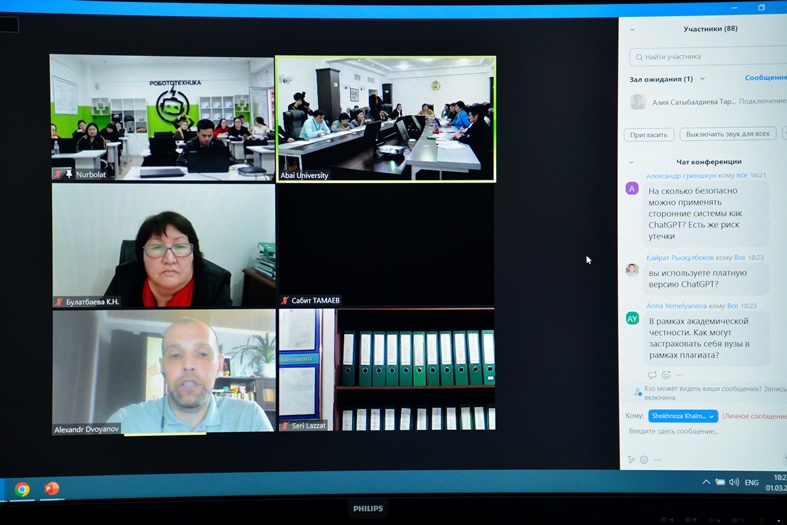 1 марта 2023 года в Abai University прошел семинар «Лучшие практики и опыт использования AI-инструментов в образовании. Влияние ChatGPT на образовательный процесс». Участвовали эксперты, члены ISACA Nursultan chapter, представители Министерства просвещения РК (РНПЦЭСО МП РК), Отделения Глобальной ассоциации ИТ-профессионалов ISACA (ISACA Nursultan chapter), ТОО «Digital Experts Group», ППС и исследователи вузов.