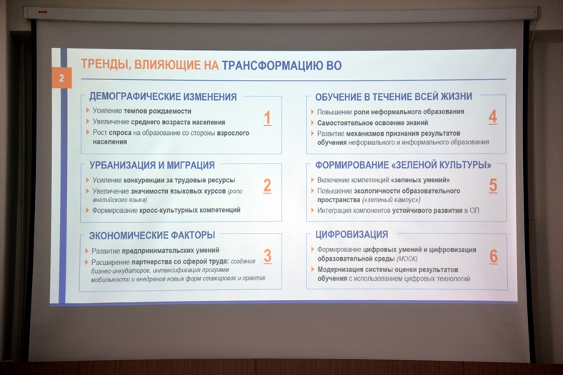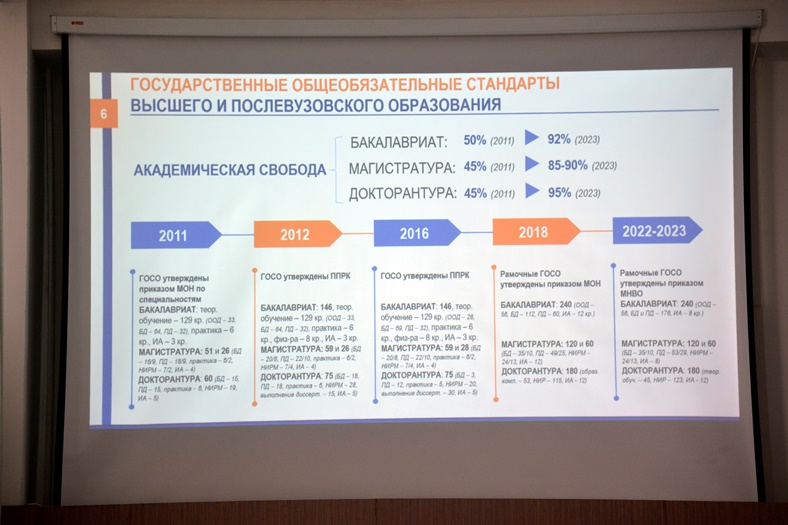 Были рассмотрены тренды, влияющие на трансформацию ВО, академическая политика высших учебных заведений, регулирование учебных процессов, технологии кредитного обучения, обязательные государственные стандарты высшего и послевузовского образования и другие актуальные вопросы, связанные с развитием системы образования.