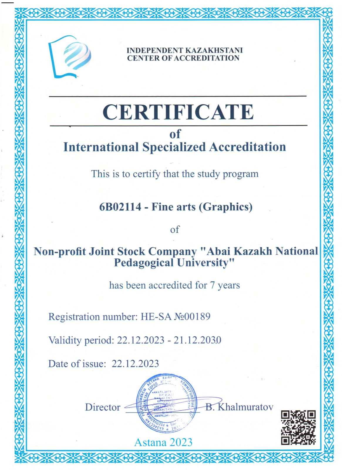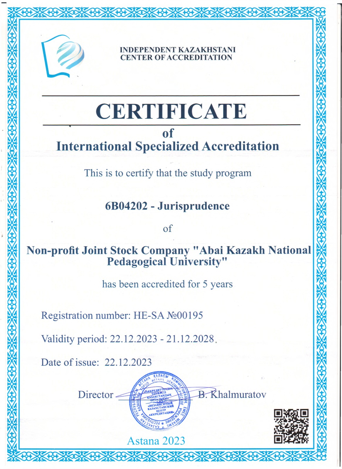 On November 28-29, 2023, Abay KazNPU successfully passed program (specialized) accreditation at the Independent Kazakhstan Accreditation Center (IKAC) for 14 educational programs, including 9 educational programs for a period of 5 years and 5 educational programs for a period of 7 years.