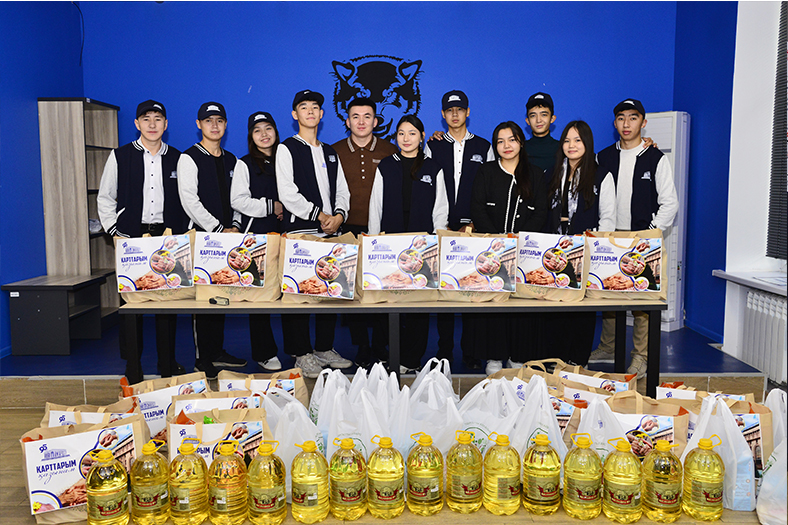 The event was attended by Vice-Rector for Social Development Shyngys Nurlanov, chairman of the Veterans Council Berikzhan Almukhametov and head of the trade union of university workers Mukhtar Ibraimov, they wished success to the student volunteers who participated in the distribution of food baskets for the elderly people of Almaty, in their studies and social work.