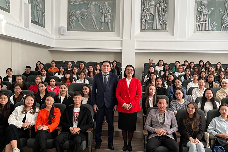12 октября 2023 года в рамках семинара-тренинга «Развитие лидерства учителей Казахстана» состоялась очередная встреча студентов программы дополнительного образования Abai Honors College. Спикером мероприятия выступила ректор Казахского национального женского педагогического университета Гульмира Канай. Она рассказала студентам о компетенциях современного педагога и поделилась своим профессиональным опытом. Среди студентов были подняты актуальные вопросы в сфере образования, обсуждены пути их решения. Повысили интерес участников и различные ситуационные задания. Доктор Г.Канай создала благоприятную атмосферу для проведения рефлексии студентов по решению конкретных задач.