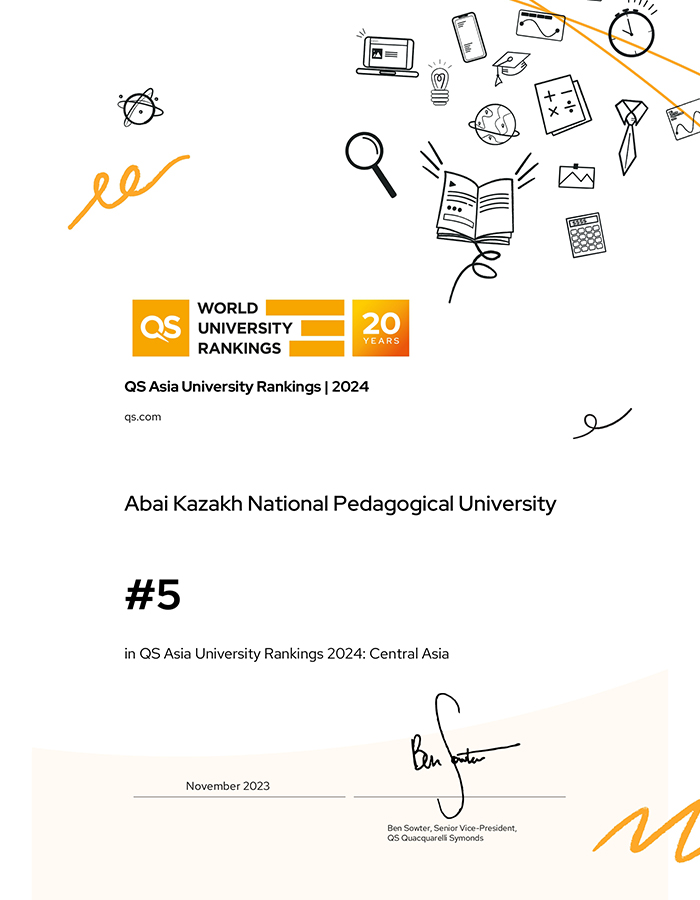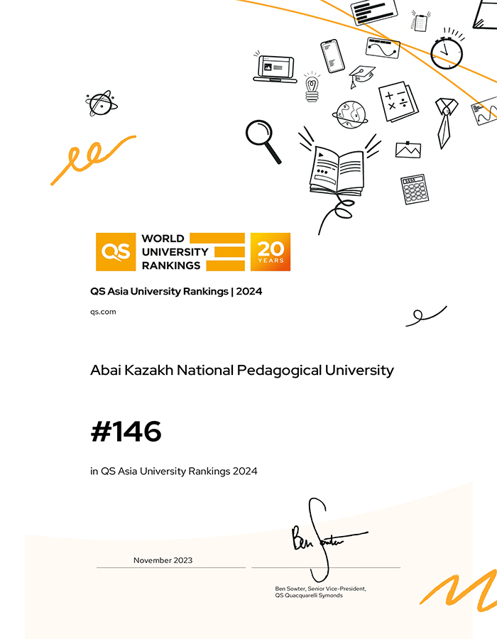 On November 8, 2023, the results of the international ranking QS Asia 2024 were published, according to which Abai University rose to 146th place and entered the TOP 150 of the best universities in Asia, the largest and most dynamically developing region of the world.