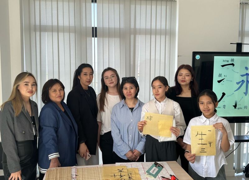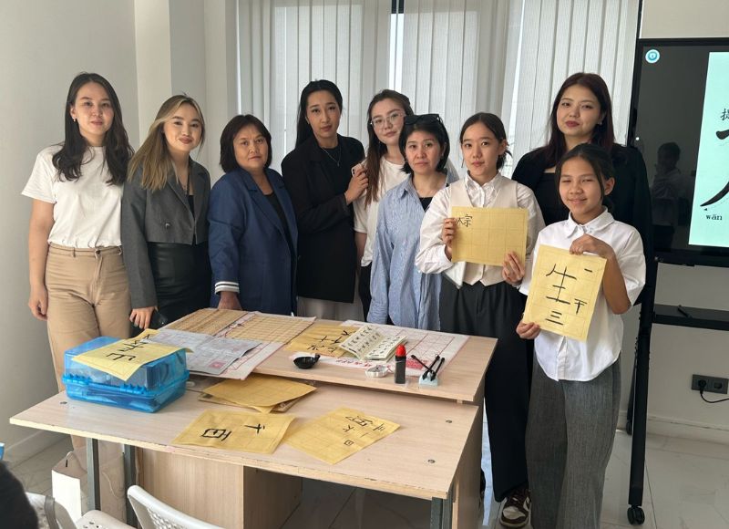 Chinese calligraphy: a master class where culture and art intersect On April 11, 2025, teachers of the Philology Faculty, Chinese Language and Sinology Department of the Kazakh National University named after Abai Raeva A.N., Meirkhan Symbat held a master class at the "Aisaf Almaty" gymnasium.
