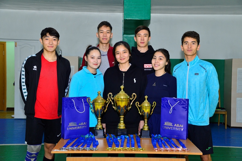 On November 21, 2023, within the framework of the student week "Abai", volleyball competitions "Sport-densawlıq kepili" were held, which was organized by the Youth Affairs Committee. The purpose of the event: to promote a healthy lifestyle, strengthen the health of students, increase their interest in sports. A total of seven teams took part in the competition. According to the results of the competition, the first place was taken by the Institute of Arts, Culture and Sports; second place -Institute of Natural Sciences and Geography; The third place - Institute of Mathematics, Physics and Computer Science. The winners and participants of the competition were awarded with special prizes and medals.