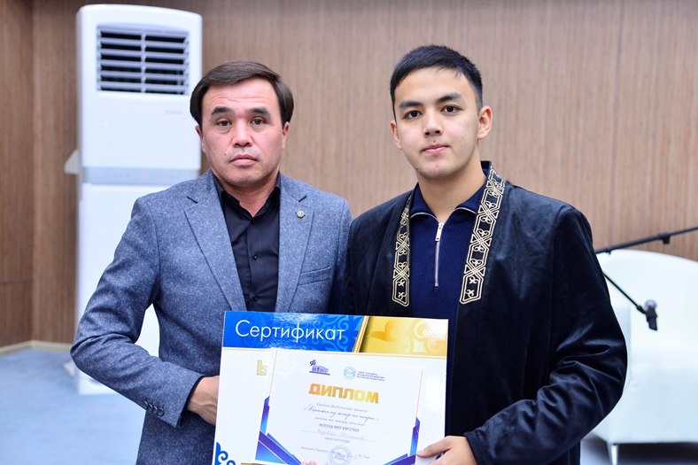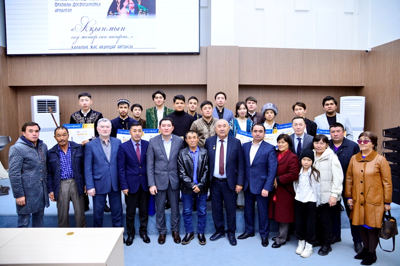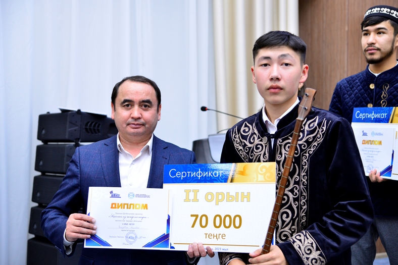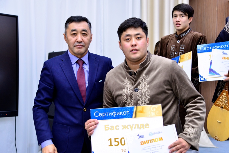 With a congratulatory speech the event was opened by the vice-rector on social development of the university Shyngys Nurlanov and wished success to young akyns. According to the results of the final stage by the decision of the jury performer Ularbek Zhenisbek was awarded a cash prize of 150,000 tenge and a diploma of the rector of the university.