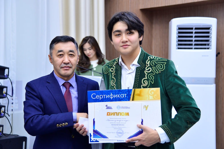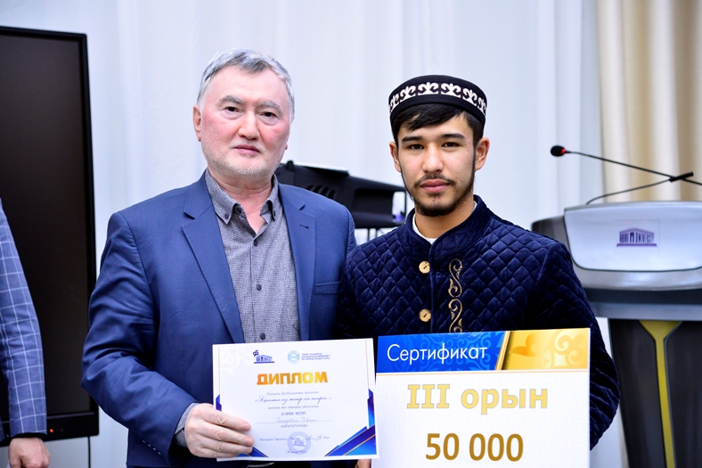 The first place was taken by the student of our university Sanzhar Dayarbek, the second - Zhalgas Kazybek, the third - Sandybai Pirzhan. It should be noted that none of the young poets was left without prizes. The winners were awarded cash prizes and diplomas of the Rector of Abai KazNPU.