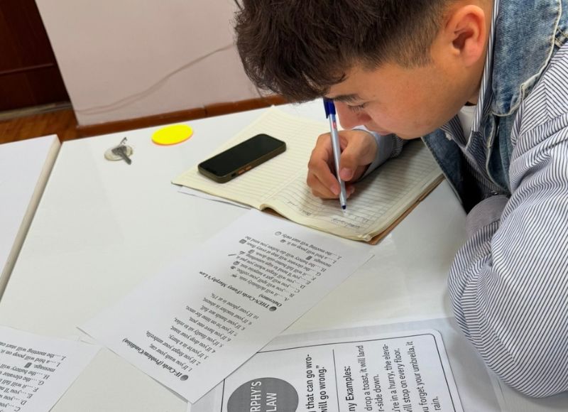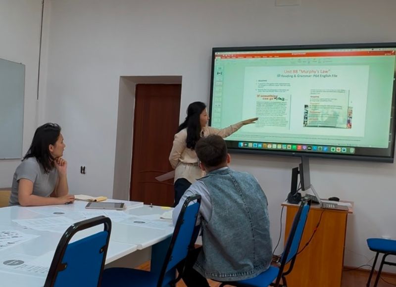 Open Lesson on the Topic "Murphy`s Law and My Hometown" On April 8, 2025, the Department of Language and ENU/ETC Preparation at the Foundation Faculty held an open English language lesson for students. The topic of the lesson was "Murphy`s Law and My Hometown." During the lesson, students academically described their hometowns from cultural and social perspectives, using the First Conditional structure, and discussed the principles of Murphy`s Law.