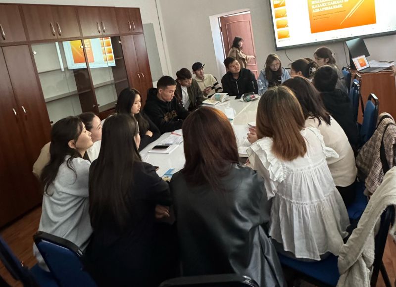 During the session, an interactive discussion was conducted between the instructor and students, featuring statistical data and eyewitness accounts from that period. Students had the opportunity to ask questions and express their reflections in both Kazakh and English. They also created thematic posters, offering visual interpretations and modern perspectives on historical events.