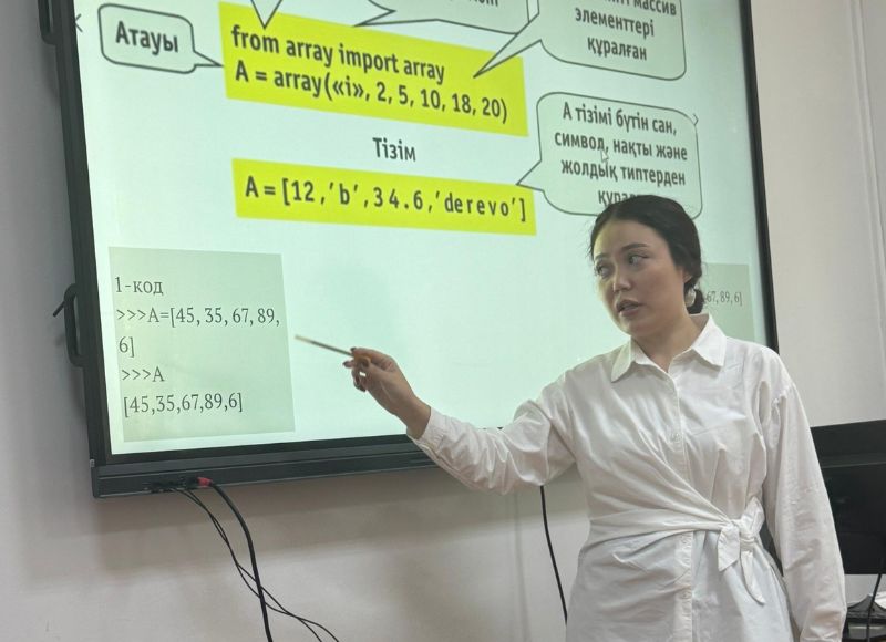 Open Lesson on Computer Science: Working with One-Dimensional Arrays in Python On May 14, 2025, an open lesson on computer science was held as part of the Foundation Faculty for learners enrolled in the "Language Preparation for the UNT/KTA" program. The lesson was conducted by instructor Esirkep Saniya.