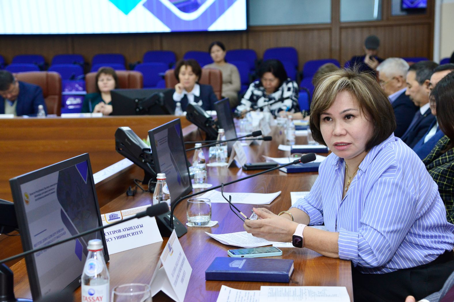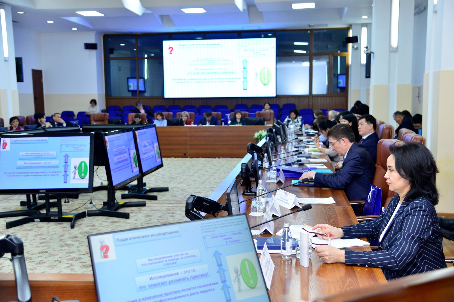 Chairman of the Committee on Quality Assurance in the field of Science and Higher Education of the Ministry of Science and Higher Education of the Republic of Kazakhstan Adlet Toibayev delivered a welcoming speech at the plenary session. Gulzat Kobenova, Chairman of the Committee of Higher and Postgraduate Education of the Ministry of Education and Science of the Republic of Kazakhstan, spoke in detail about the implementation of the national report, on the training of teachers of a new formation and retraining, on the institutional transformation of teacher education, and on the project "Modernization of secondary education".