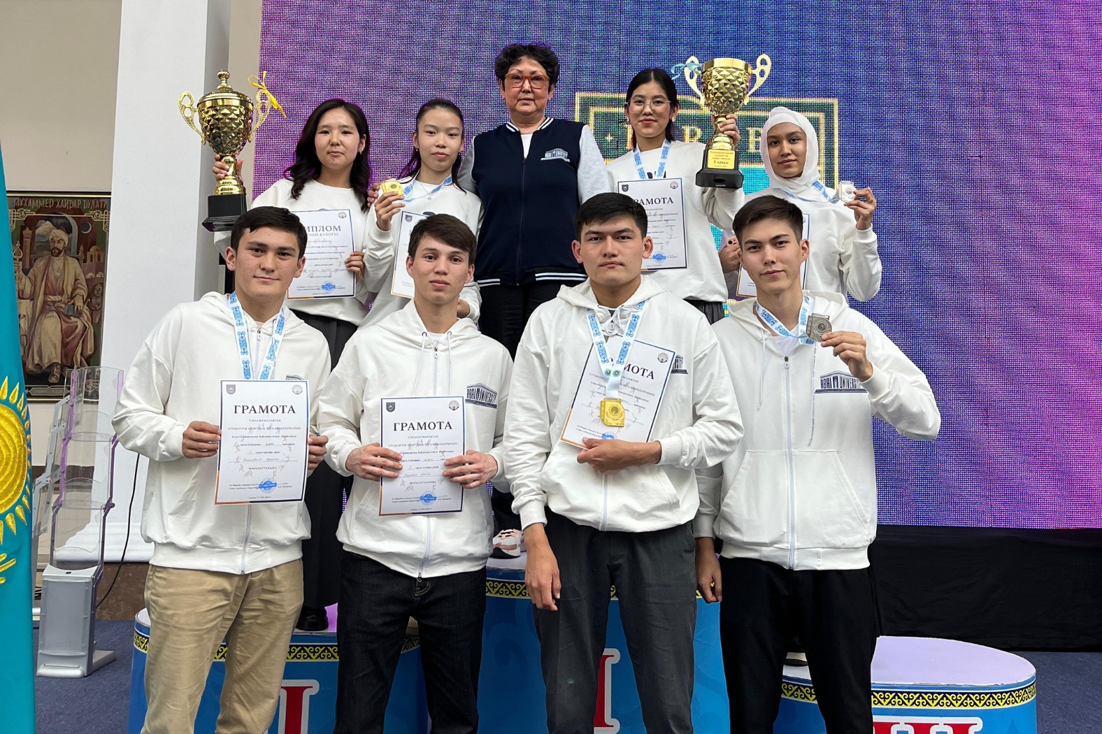 In the individual championship of the regional stage of the competition of the Student Sports League of the Republic of Kazakhstan: - 1 board-Daken Eldar, champion, 1st place, PEaS; - 3 boards-Zhanabilov Yeraulet-champion, 1st place, PEaS; - 3 boards-Toursynali Akerke, champion, 1st place, PEaS; - 1st board-Kuatova Aruzhan, 2nd place, PEaS; - 2 boards-Sarsenbayeva Zabira-2nd place, PEaS; - 2 boards-Pernebaev Yerasyl - 2nd place, INSG.