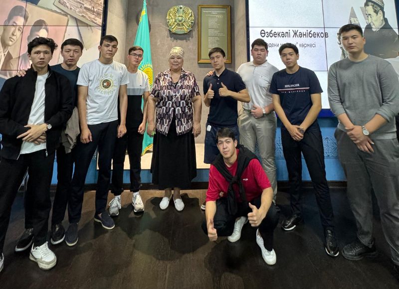 Students of the Faculty of History and Law got acquainted with photographs, archival documents, works and awards, clothes, personal belongings, manuscripts, sketches from the family of U. Zhanibekov at the exhibition, stage clothes, photographs of the first performer of the ensemble "Sazgen Sazy" modeled after U. Zhanibekov from the funds of the Almaty Museum, musical instruments and State historical and Cultural funds The museum reserve was visited by the personal belongings of U. Zhanibekov.