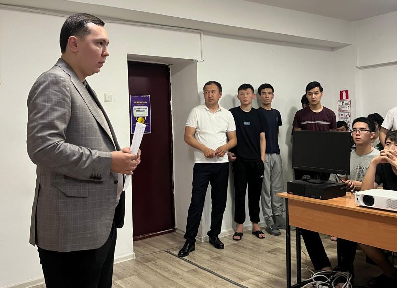On May 16, 2024, police captain N. Kulbaev, the direct representative of the Almaty city internal affairs department for combating organized crime, conducted explanatory work with the participation of students of dormitory No. 5 of the Abai University. During the meeting, videos were shown on the fight against organized crime and ensuring self-security, as well as the fight against drug crime.