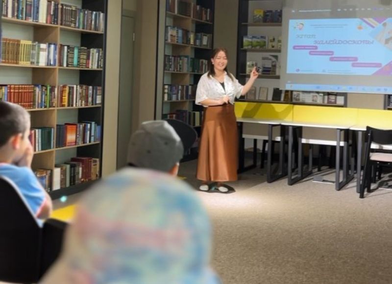 On June 24-25, 2024, in library No. 14, a 1st-year doctoral student of the Department of Primary Education at the Institute of Pedagogy and Psychology of Abai University, Alua Ibraikhanova, conducted an excursion on the topic "in the summer holidays with a good book" with primary school students.