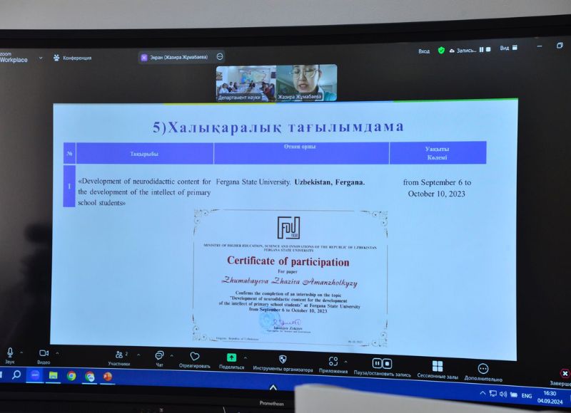 Postdoctoral researcher, PhD Zhazira Zhumabaeva has published 2 articles in scientific journals listed in the Scopus international database with a percentile above 35, and 5 articles in Journals of of the Committee for Quality Assurance in Science and Higher Education of the Ministry of Science and Higher Education of the Republic of Kazakhstan. She is the lead researcher for 1 grant-funded project and an executor for another project funded by the Ministry of Education and Science of the Republic of Kazakhstan. She has conducted 4 seminars for future primary education teachers and primary school teachers. She has published 1 monograph, 1 textbook, 1 methodological guide, 1 electronic methodological guide, and 1 mobile application.
