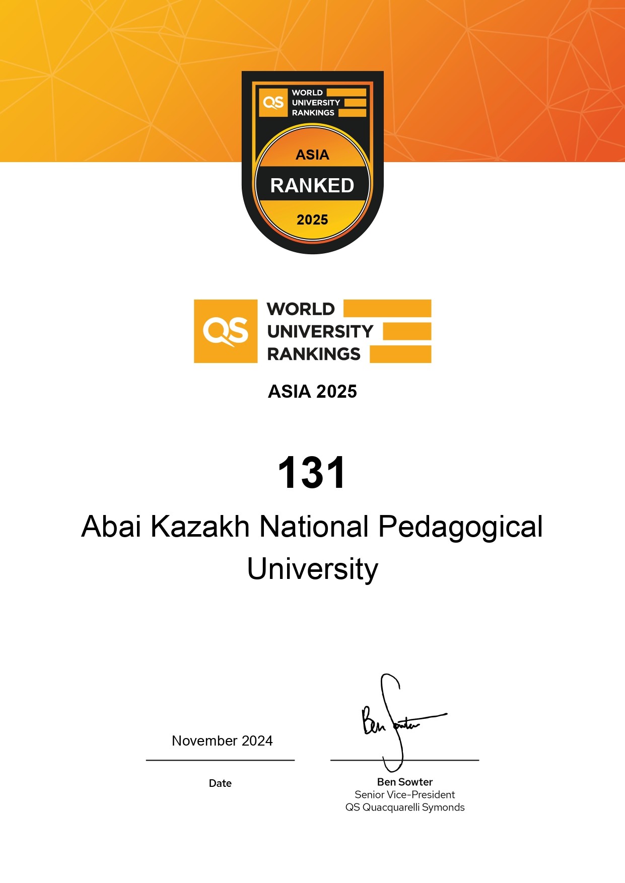 06.11.2024 Abai University ranks 131st in the QS Asia University Rankings 2025 In the new QS Asia University Rankings 2025, a total of 984 universities from 25 countries across the Asian mega-region participated. In terms of country representation, India, China, and Japan lead the rankings. From Kazakhstan, 35 universities were included in the ranking.