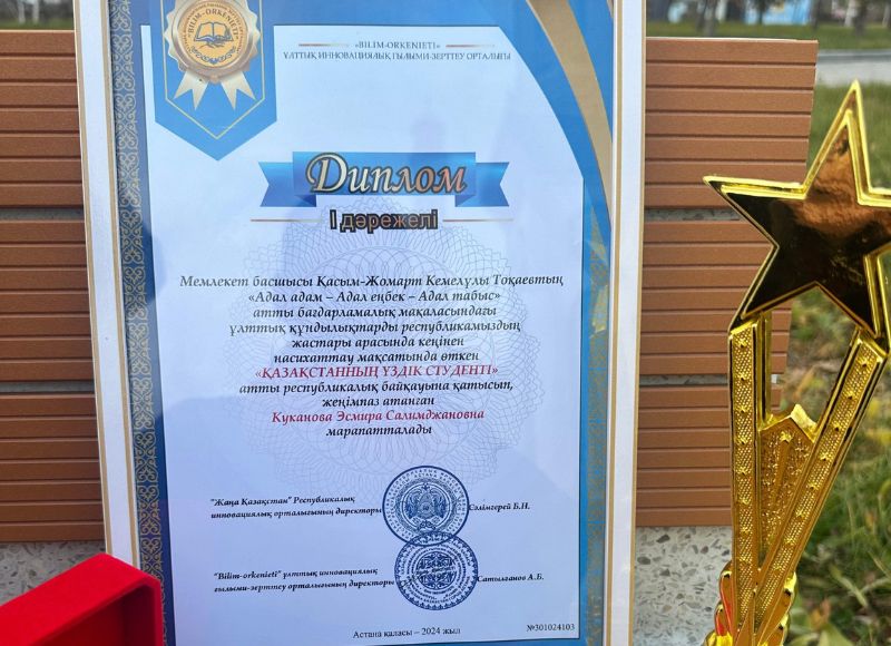 Esmira Kukanova, a 4th-year student of the Department of Oriental Philology and Translation at the Faculty of Philology of Abai University, studying in the specialty of Translation, took 1st place following the results of the competition.