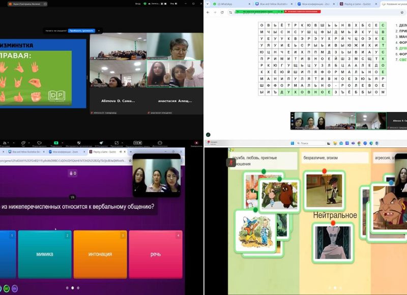 Future educational psychologists gave an interactive lecture on the topic "Types of Communication" and talked about the features of creating and using interactive exercises on the Kahoot, WordWall, and LearningUp platforms. Course participating (Russian language teachers) took part in quizzes and received diplomas, etc.