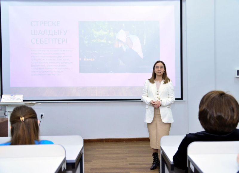 The purpose of the seminar is to teach students to control emotions, effectively deal with stressful situations and maintain psychological stability. The ability to manage your emotions and cope with stress are important indicators of psychological health and the overall quality of life of each person. The seminar was conducted by the head of the Department of General and Applied Psychology, PhD Doctor, Associate Professor Gulmira Bekenovna and Master of Social Sciences, senior lecturer Zhanagul Amantaevna. During the seminar, the speakers showed students how to increase their educational and cognitive abilities and confidence, psychologically form skills in the emotional and volitional sphere of behavior, and overcome stress.