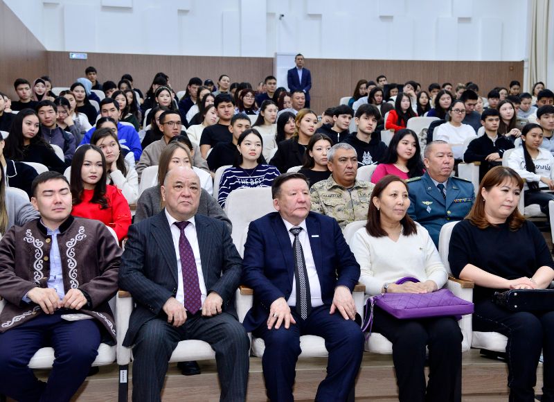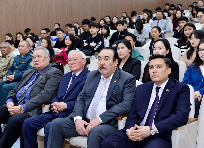 On February 13, 2025, the Department of Social Work and Youth Policy, in collaboration with the Hakim Abai National Education Center, organized a cognitive meeting with Doctor of Economics, laureate of the State Prize of Kazakhstan, and academician Orazaly Sabden. The event, themed «The World, Abai, and Kazakhstan’s Path», was attended by University Rector Bolat Tilep, Vice-Rector for Social Development Maksat Zhakauov, Research Fellow of the Hakim Abai National Education Center Zhabal Shoinbet, Chairman of the Veterans Council Berikzhan Almakhanbetov, Head of the Alumni Association Bolatbek Nurbatyrov, Chairman of the University Trade Union Mukhtar Ibraimov, faculty members, and more than 150 university students. This meaningful and insightful meeting aimed to introduce students to the life and work of a prominent figure who has made significant contributions to Kazakhstan s economic development.
