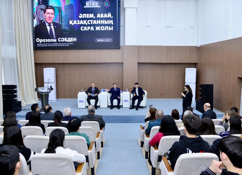 The discussion focused on his scientific achievements, economic reform proposals, and initiatives for educating the younger generation. The event also emphasized the values of Hakim Abai s Perfect Man" concept and its significance for students. In his opening speech, Chairman of the Board-Rector Bolat Anapiyauly stated: Abai University takes pride in the achievements of its alumni. Our goal is to nurture educated, competitive young individuals with a strong national spirit. Your scientific work and life experience will undoubtedly serve as a guiding light for us." He also expressed readiness to implement joint projects. As a token of appreciation, the rector awarded Orazaly Sabden the Abai badge and honored him with special recognition.