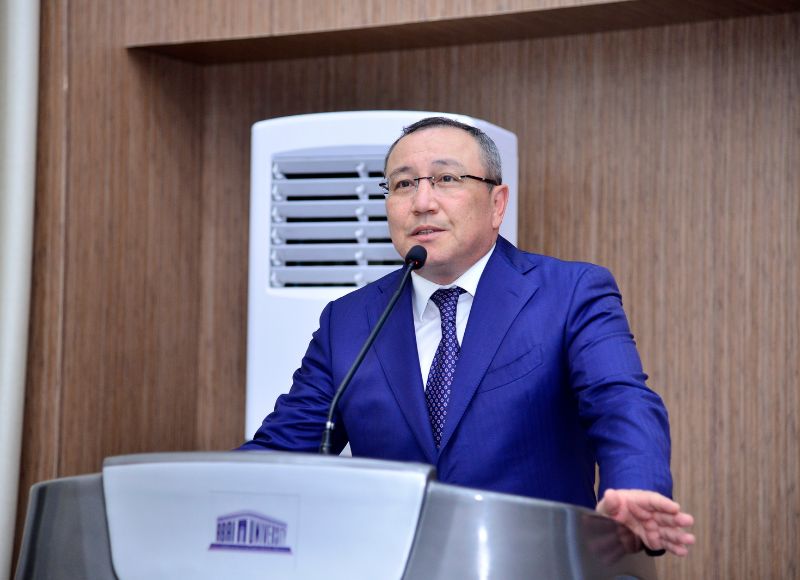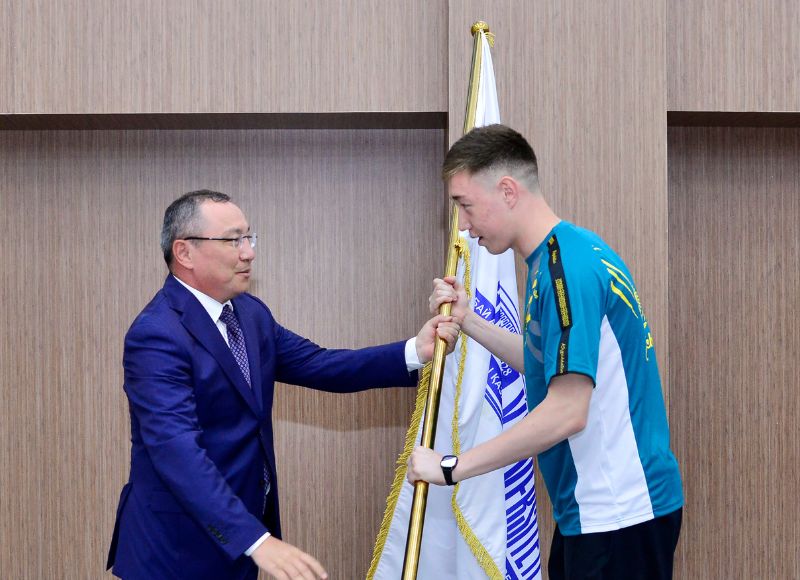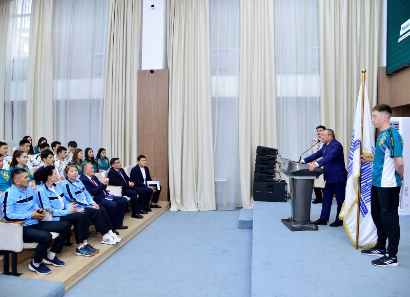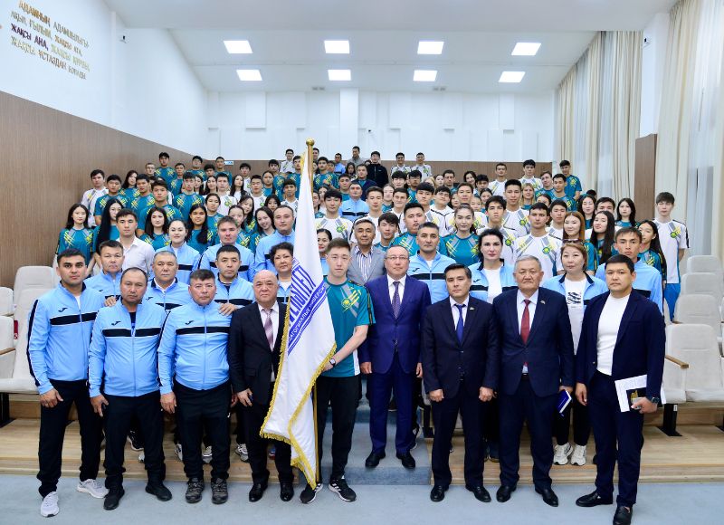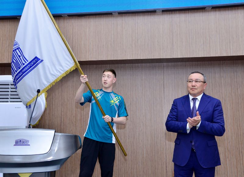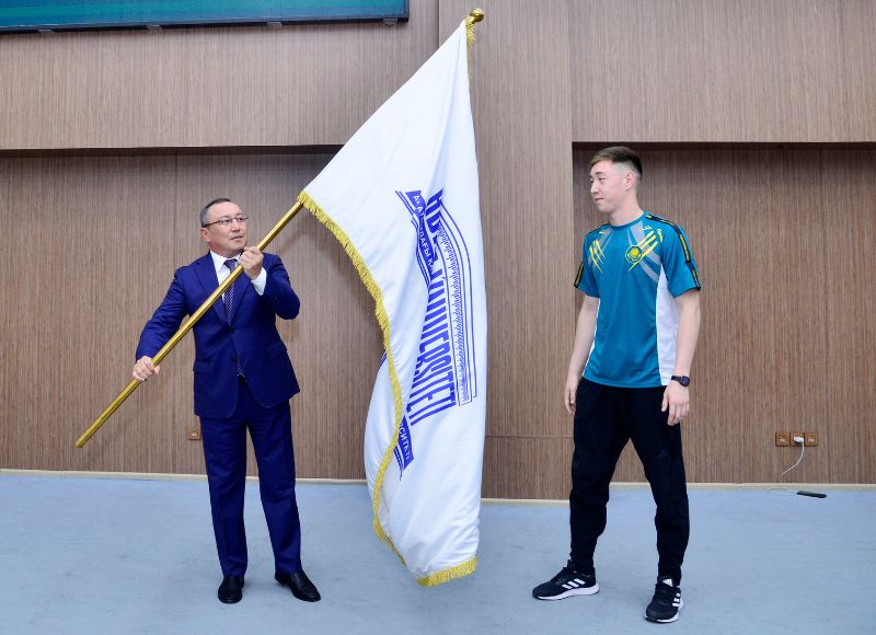 On this occasion, the Chairman of the Board and Rector of the University, Bolat Tilep, wished the participants success and ceremoniously presented the university flag to a student who is a two-time karate champion.