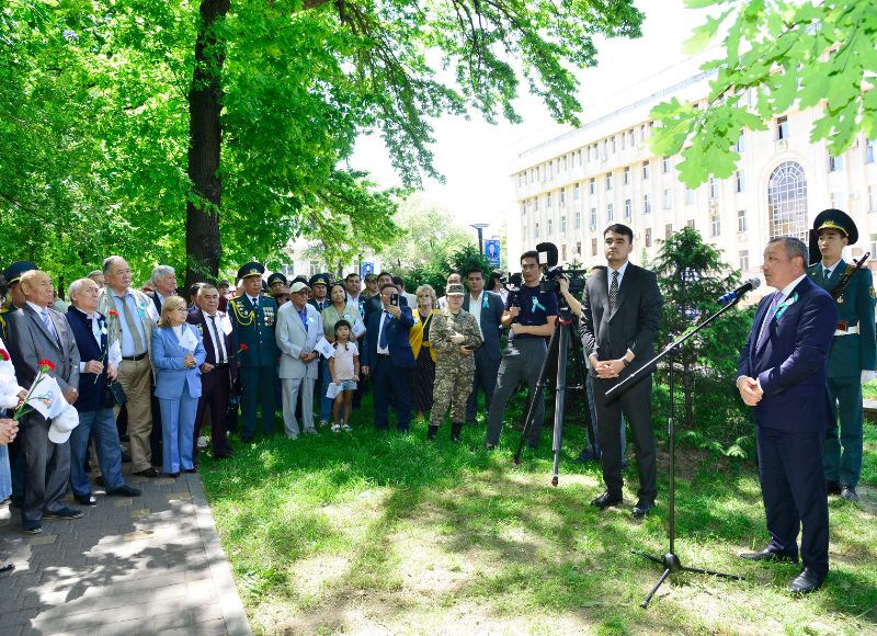 In his congratulatory speech, Chairman of the Board-Rector Bolat Tlep stated: "Until today, eight Heroes of the Soviet Union who went to the front from our university were known. But on the eve of the 80th anniversary of Victory, thanks to the research work of our historians and the study of archival documents, we learned of a ninth hero who graduated from our university. With the support of our alumni, the commemorative stone has been installed. This monument is a tribute to the faculty, scholars, and students who went to the front, and a gesture of reverence for the spirit of our ancestors."