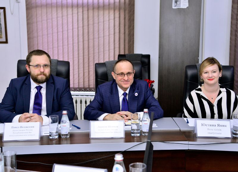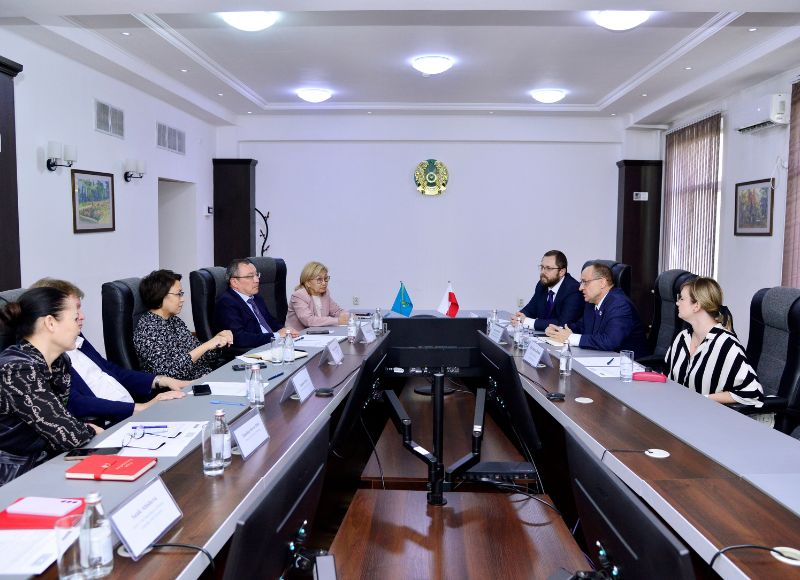 The meeting, aimed at discussing cooperation issues, was attended by Consul General of Poland in Almaty Dariusz Szewczyk, Vice-Consul Paweł Niedźwiecki, Polish language instructor Justyna Janik, Chairman of the Board - Rector Bolat Tilep, Vice-Rector for Academic Affairs Banu Narbekova, Vice-Rector for Strategy and Internationalization Aigul Iskakova, Director of the Department of International Cooperation Bayan Sapargaliyeva, Head of the Physics Department Vladimir Kosov, Dean of the Faculty of Philology Alua Tanjarykova, Head of the Department of Russian Language and Literature Saule Abisheva, and Head of the Department for International Projects and Cooperation Aigerim Tavyldieva.