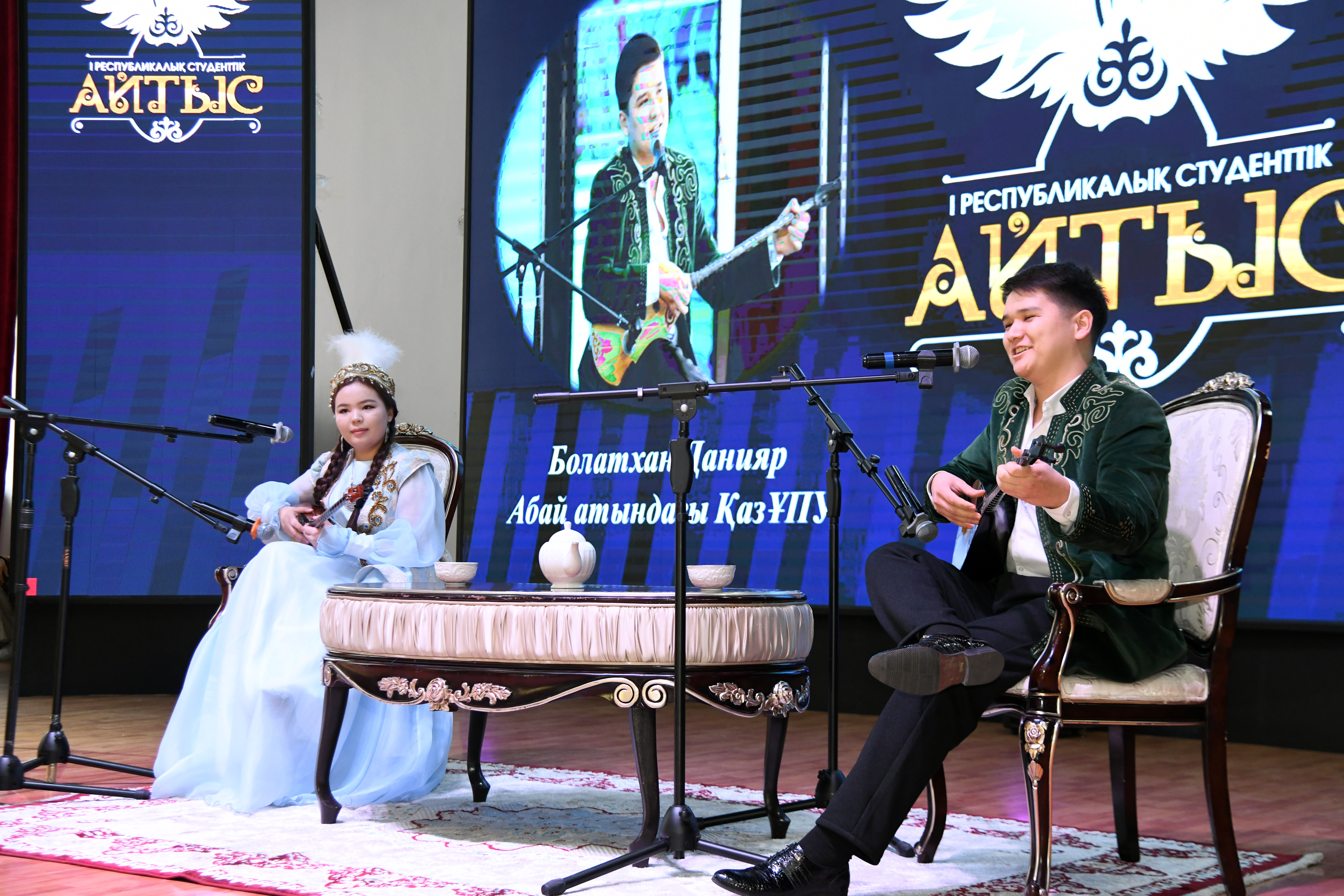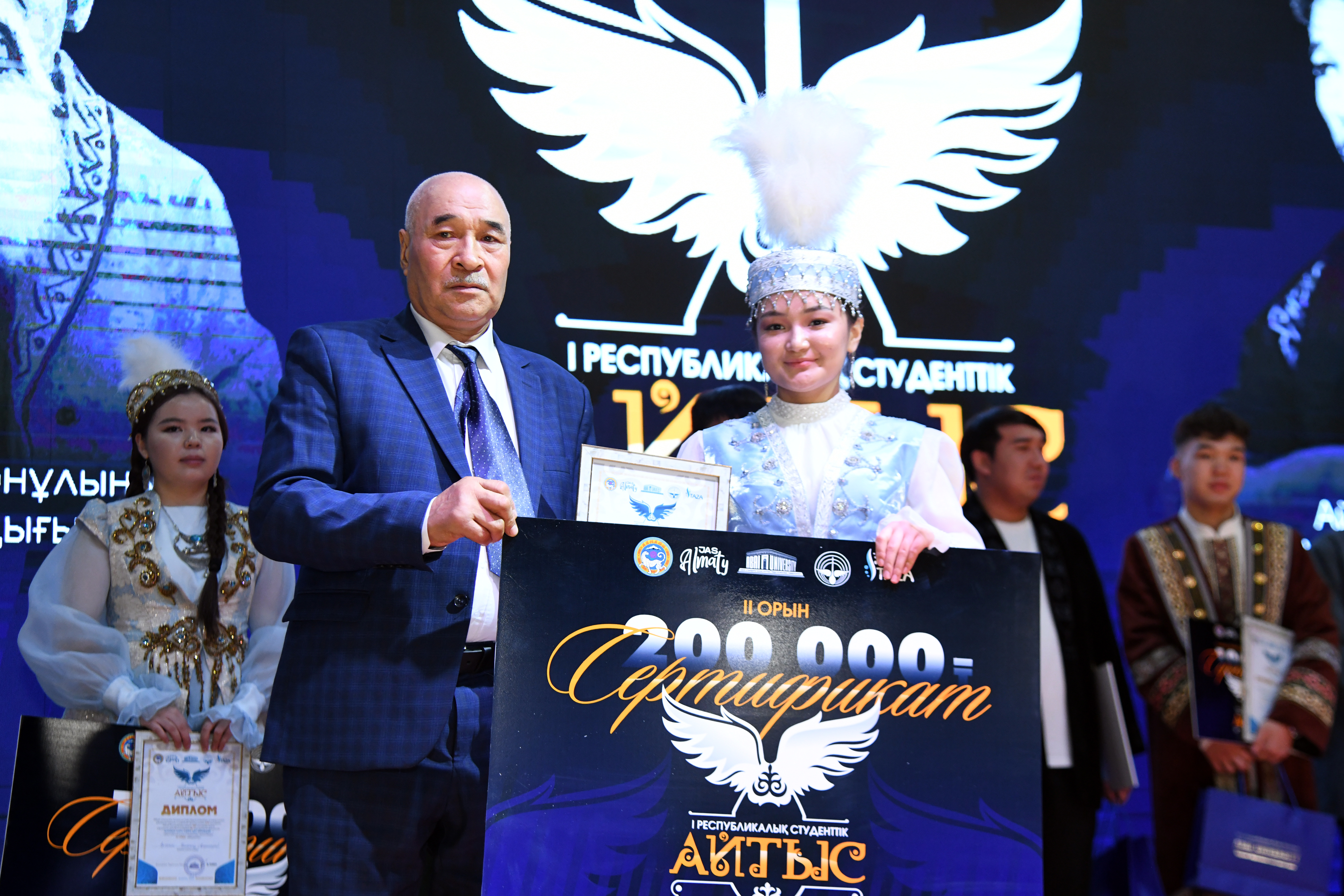 Opening the republican competition, Chairman of the Board – Rector of Abai University Bolat Tilep emphasized the importance and spiritual significance of this art form and wished success to all participants. The general sponsor of the aitysh, director of the domestic company “Taza Brand” Zhibek Amankeldina, stressed that supporting national art and assisting young talents is the civic duty of every domestic producer.