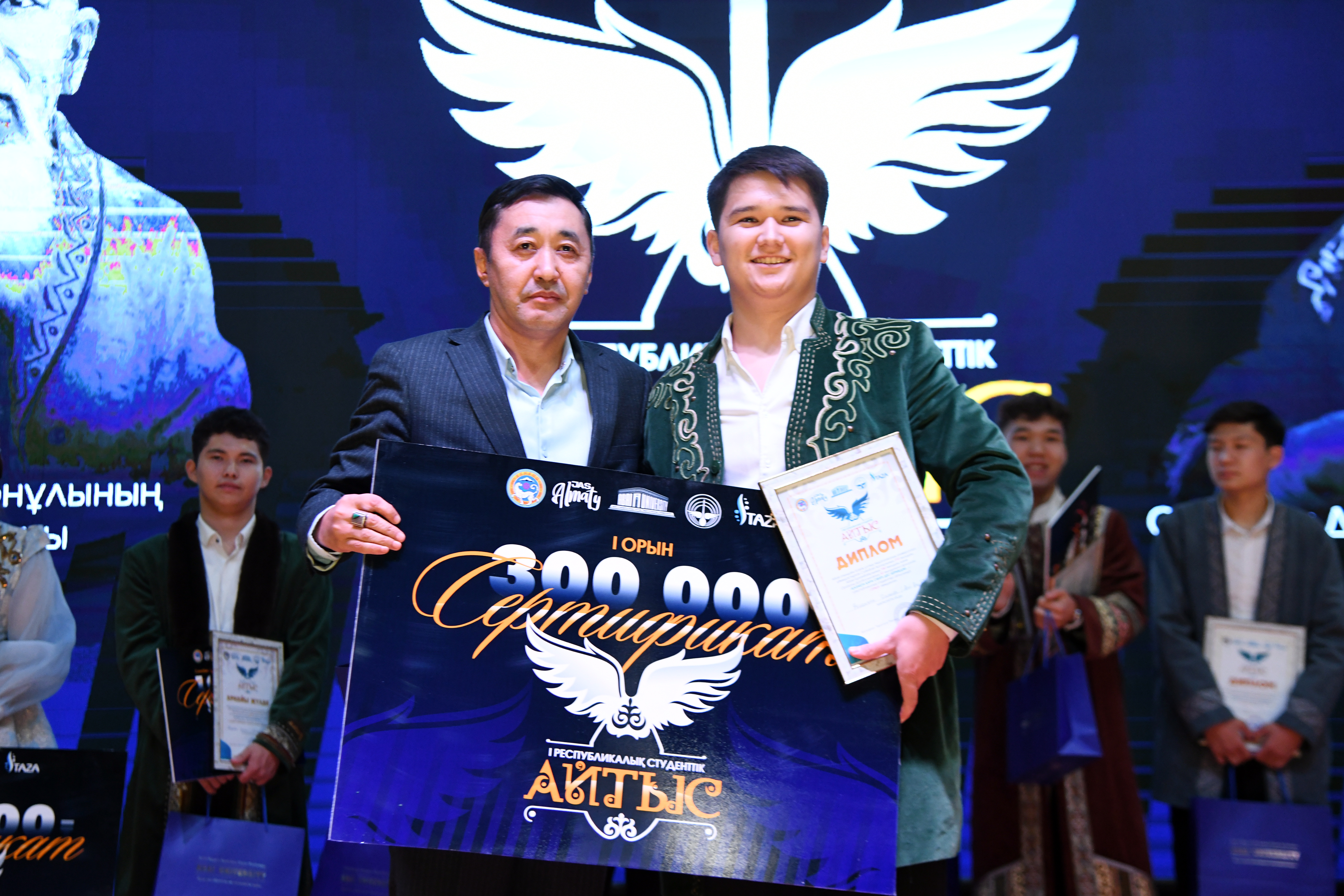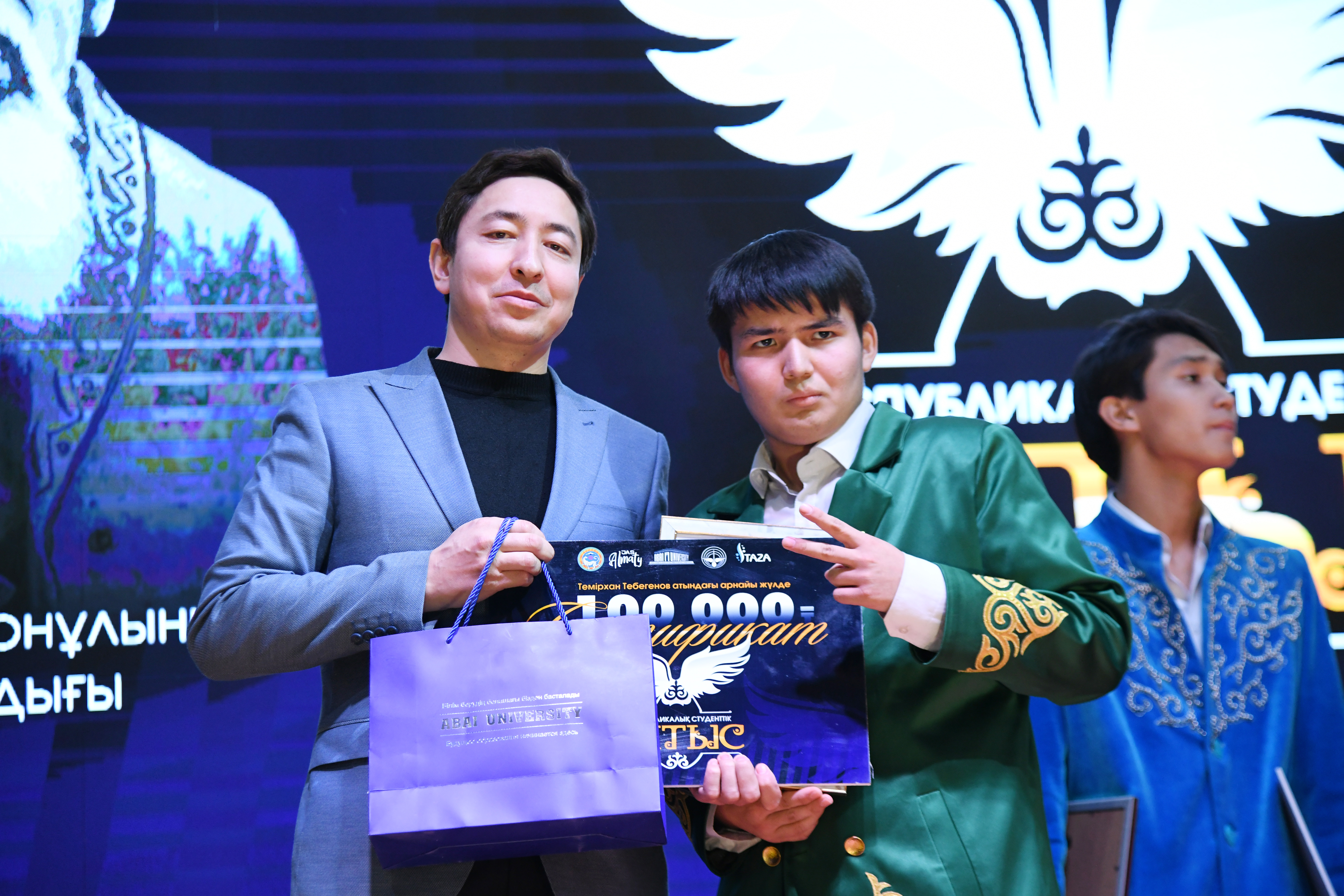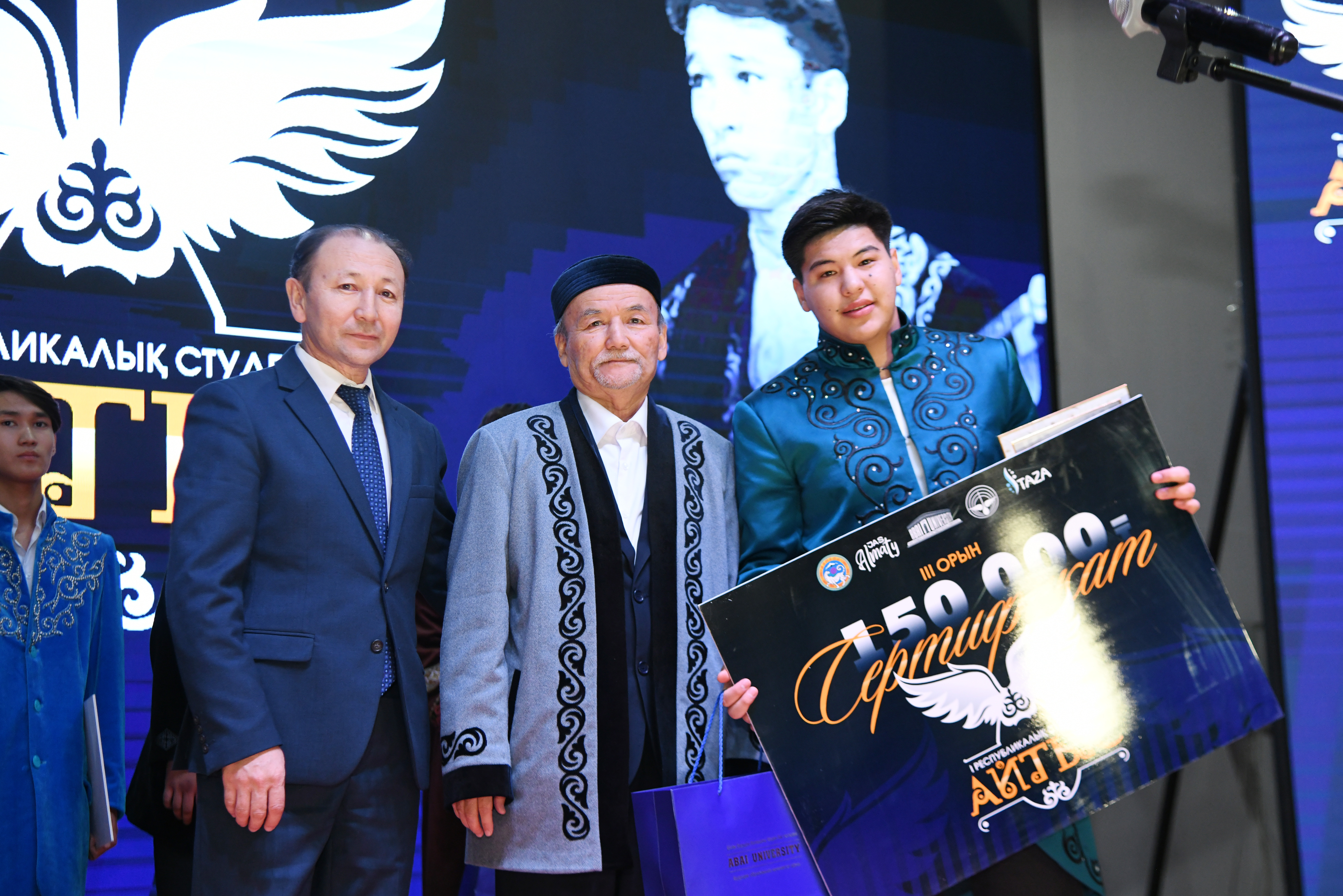 Based on the results of the competition, the Grand Prix was awarded to Arai Nuradin, a student of K. Zhubanov University from Aktobe region. She received a monetary prize of 400,000 tenge. First place went to Daniyar Bolatkhan, a student of Abai University (Almaty), who received 300,000 tenge. Second place was shared by Sanzhar Dayarbek (Abai University, Almaty) and Aiganym Balgabayeva (East Kazakhstan Region, S. Amanzholov University), each receiving 200,000 tenge. Third place and prizes of 150,000 tenge each were awarded to four participants: – Marsel Ersaiynov (Astana, Kazakh National University of Arts named after K. Baiseitova); – Zhanerke Kambar (Zhambyl Region, University named after Sh. Murataza); – Nurbek Bakir (Pavlodar Region, A. Margulan University); – Dilnaz Erzhegít (Kyzylorda Region, Korkyt Ata Kyzylorda University).