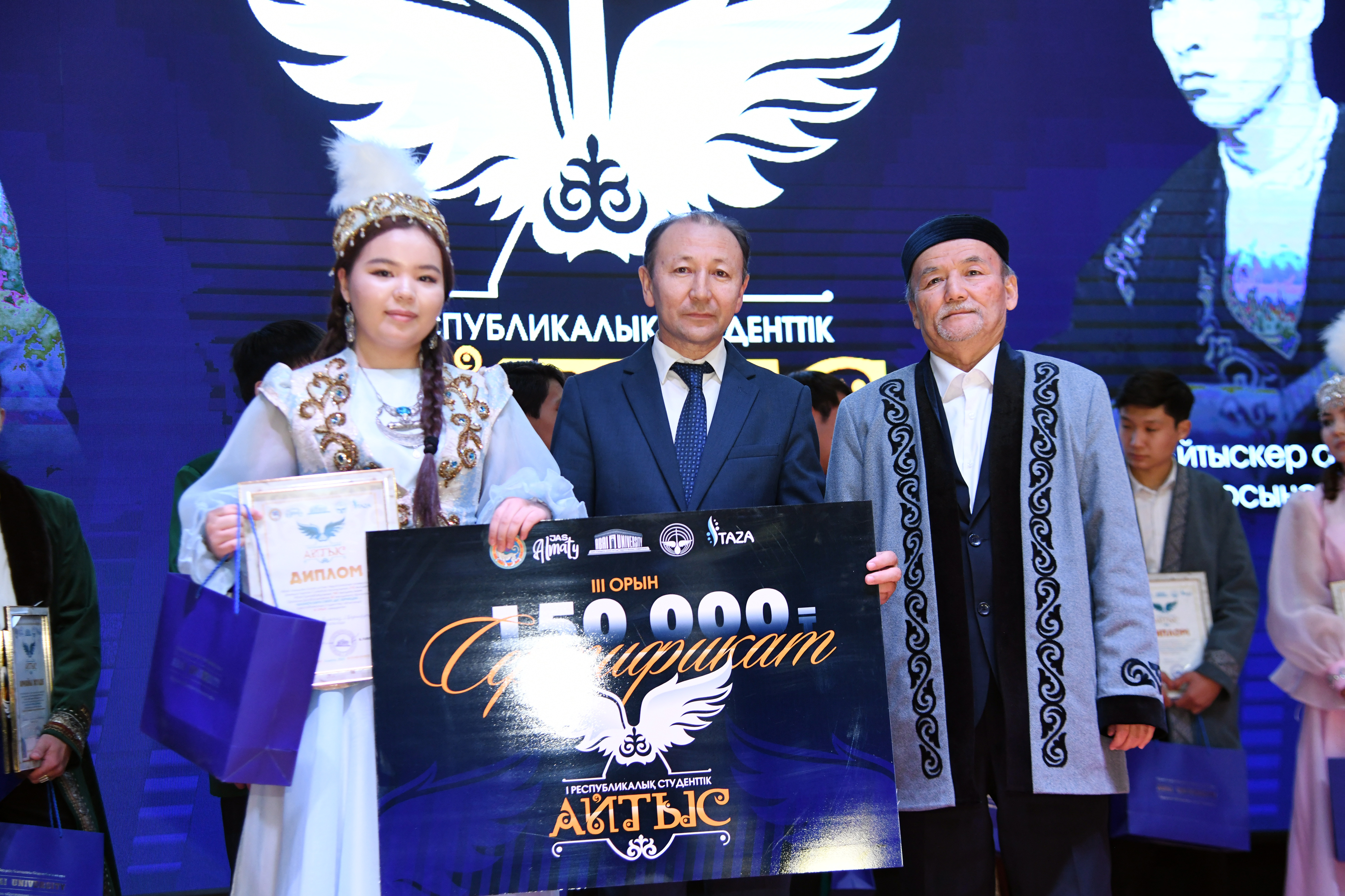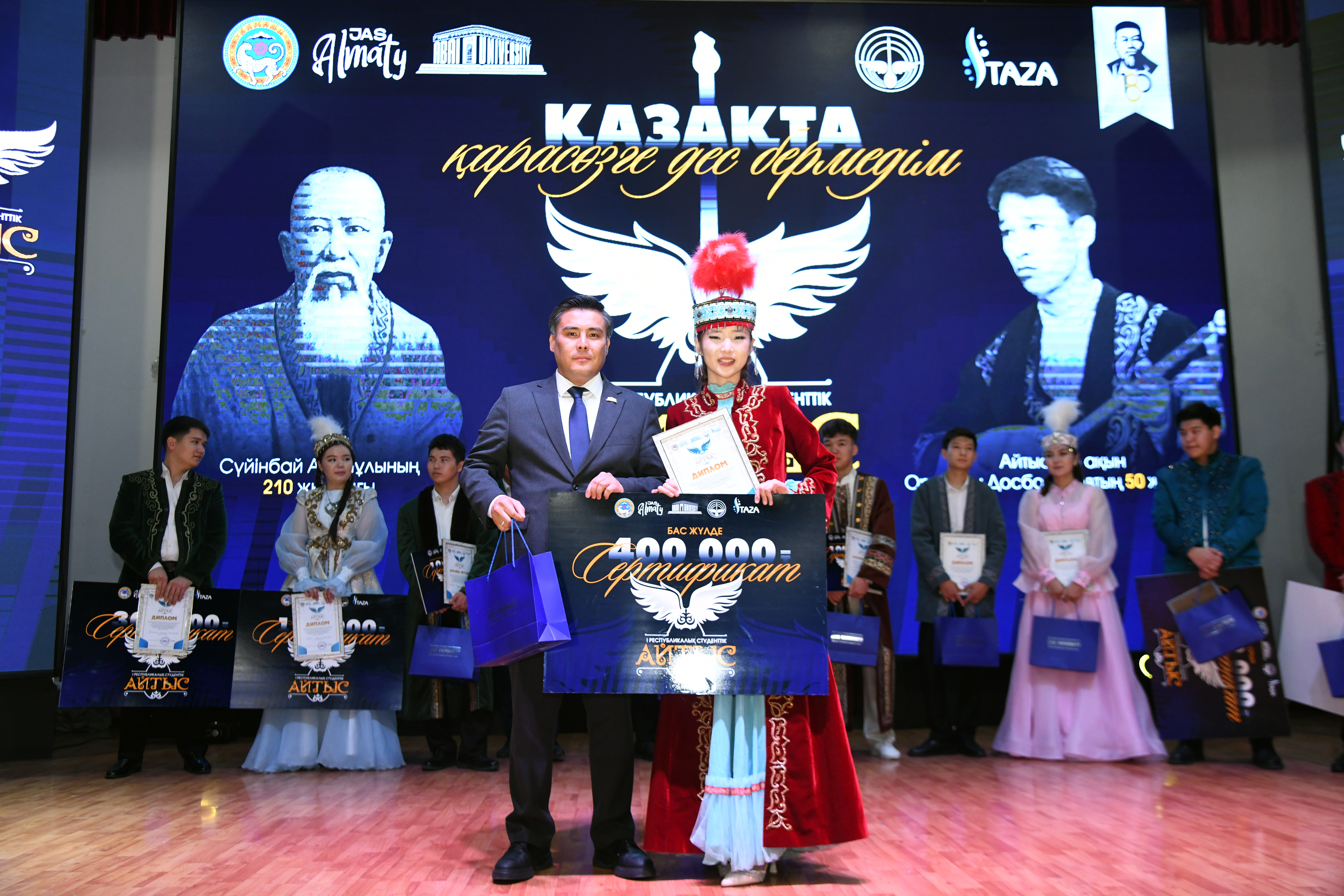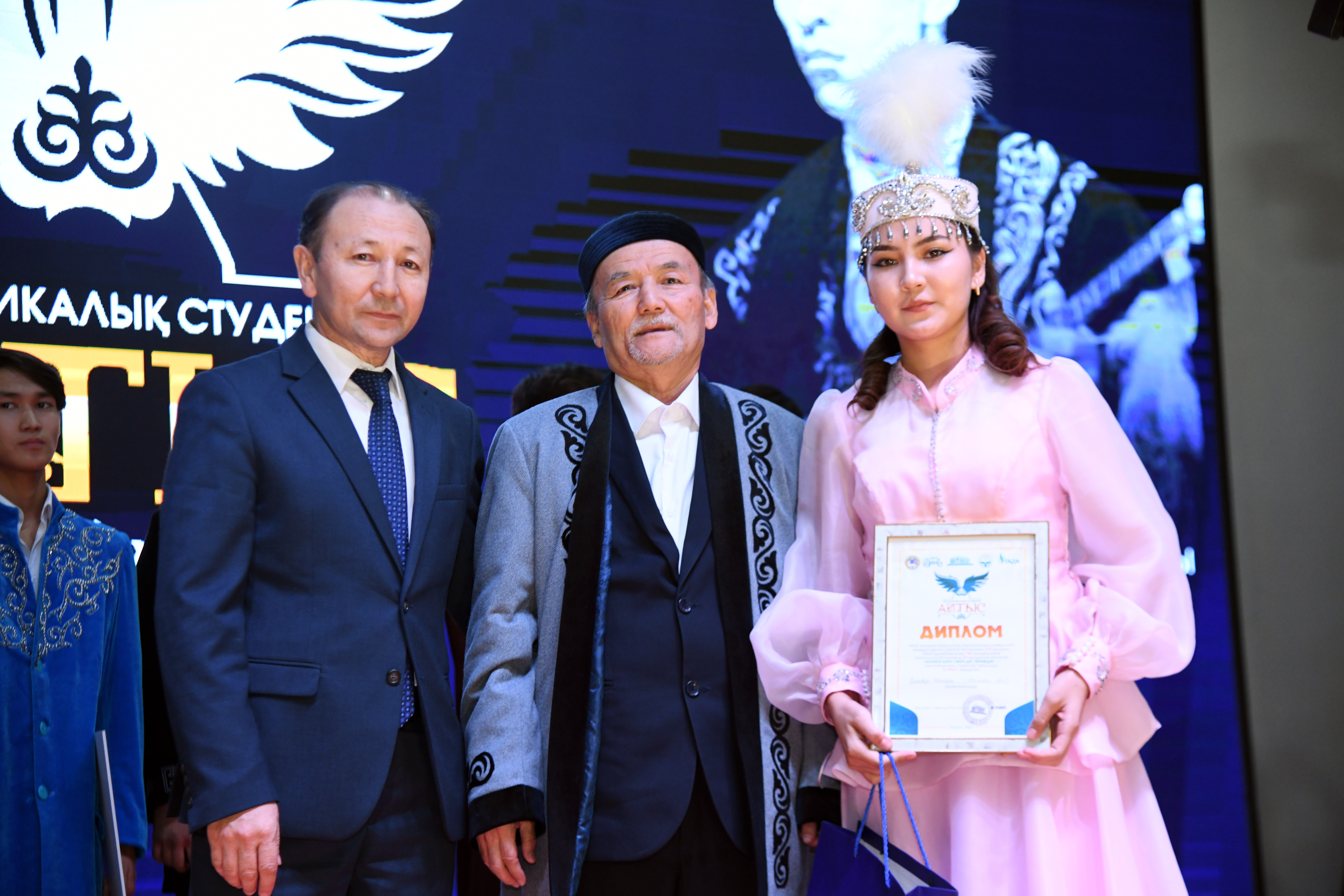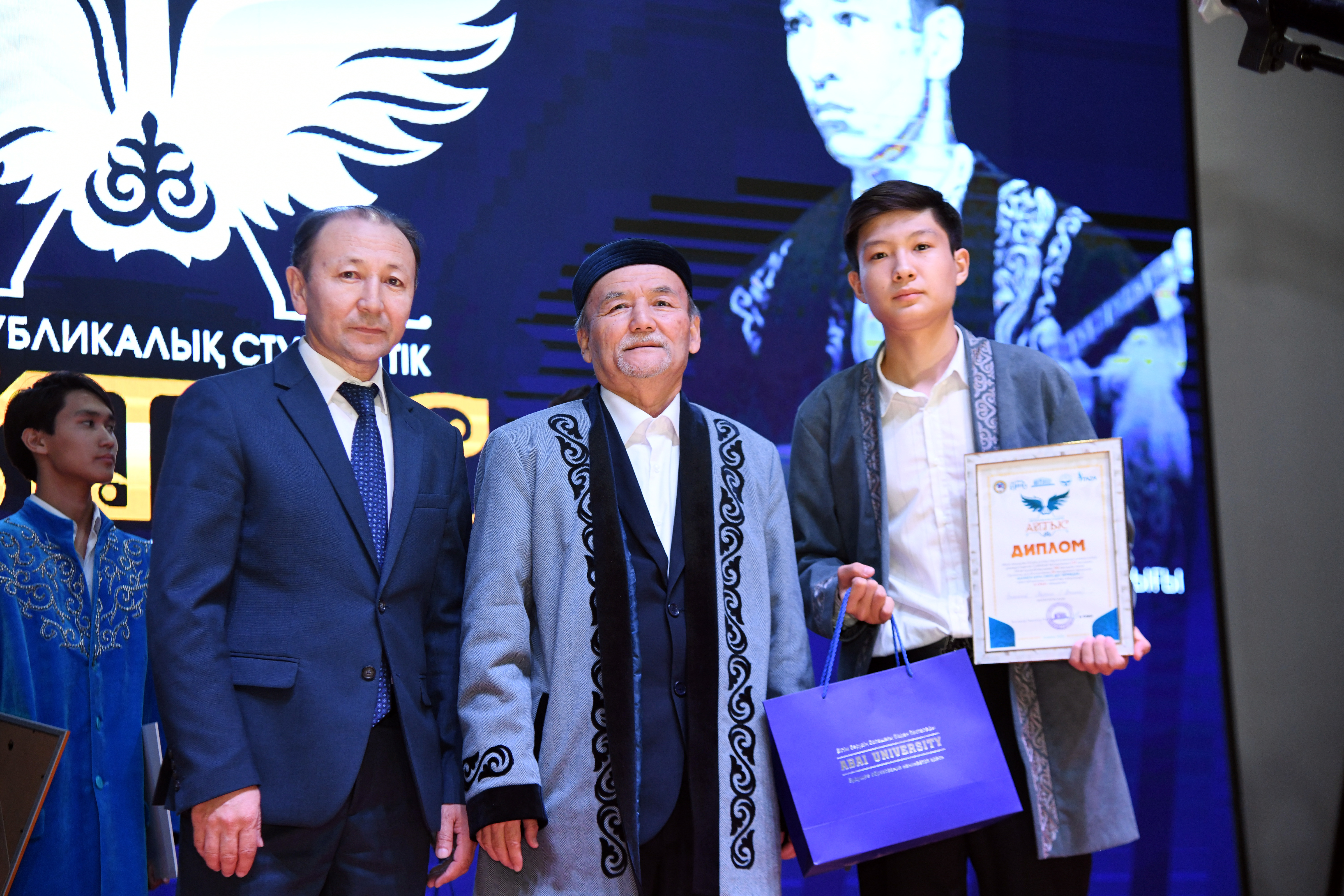 Based on the results of the competition, the Grand Prix was awarded to Arai Nuradin, a student of K. Zhubanov University from Aktobe region. She received a monetary prize of 400,000 tenge. First place went to Daniyar Bolatkhan, a student of Abai University (Almaty), who received 300,000 tenge. Second place was shared by Sanzhar Dayarbek (Abai University, Almaty) and Aiganym Balgabayeva (East Kazakhstan Region, S. Amanzholov University), each receiving 200,000 tenge. Third place and prizes of 150,000 tenge each were awarded to four participants: – Marsel Ersaiynov (Astana, Kazakh National University of Arts named after K. Baiseitova); – Zhanerke Kambar (Zhambyl Region, University named after Sh. Murataza); – Nurbek Bakir (Pavlodar Region, A. Margulan University); – Dilnaz Erzhegít (Kyzylorda Region, Korkyt Ata Kyzylorda University).
