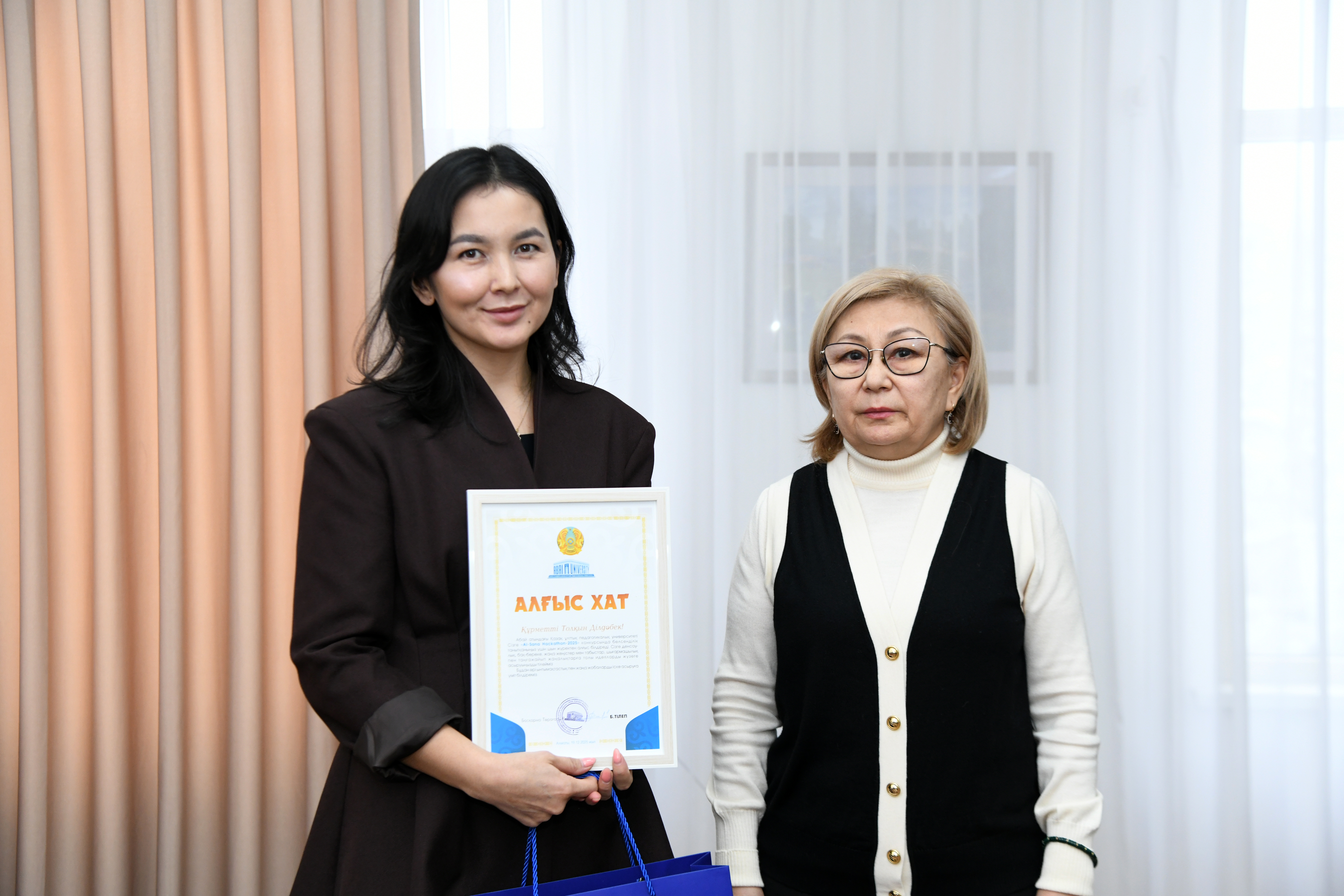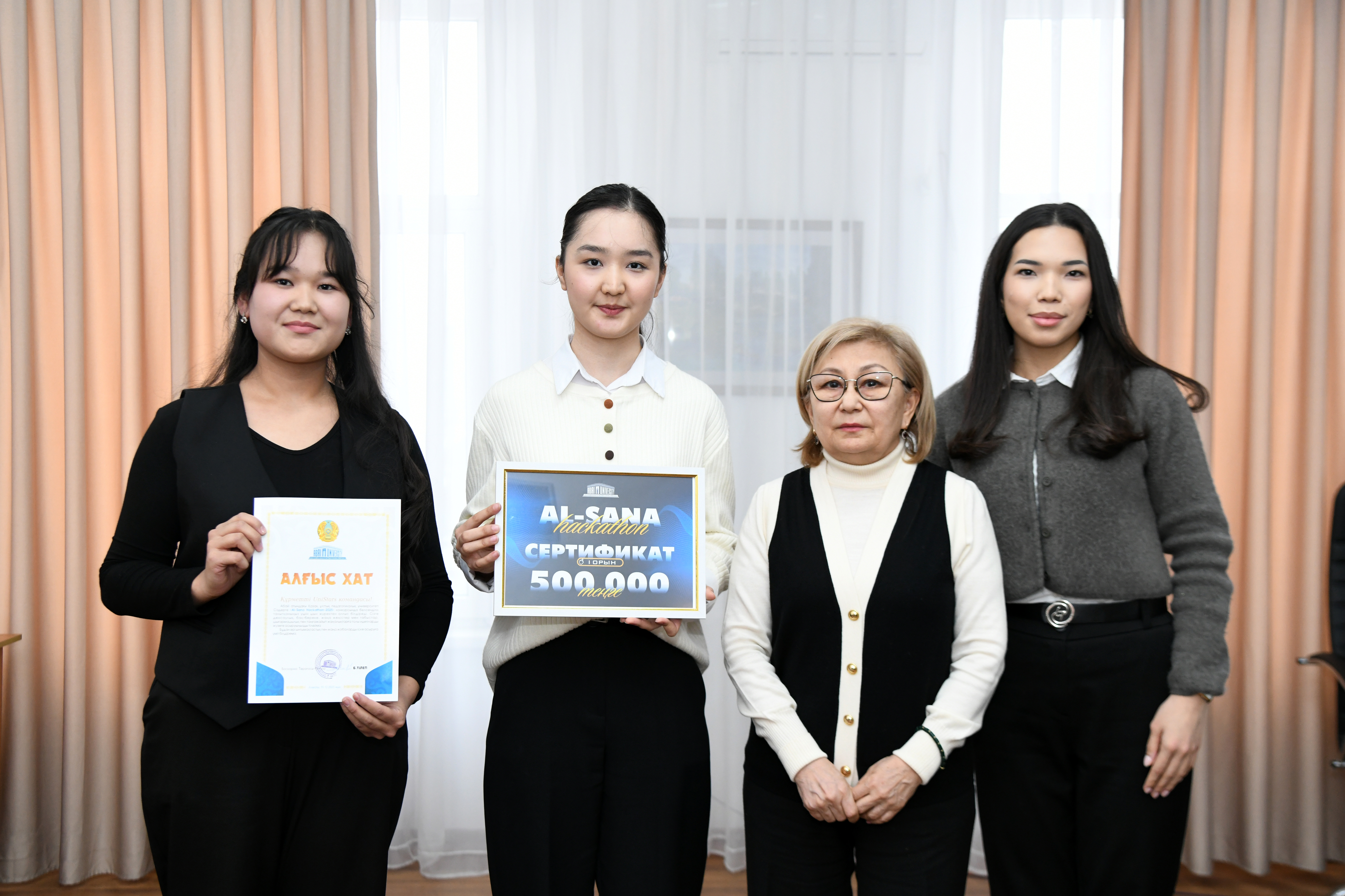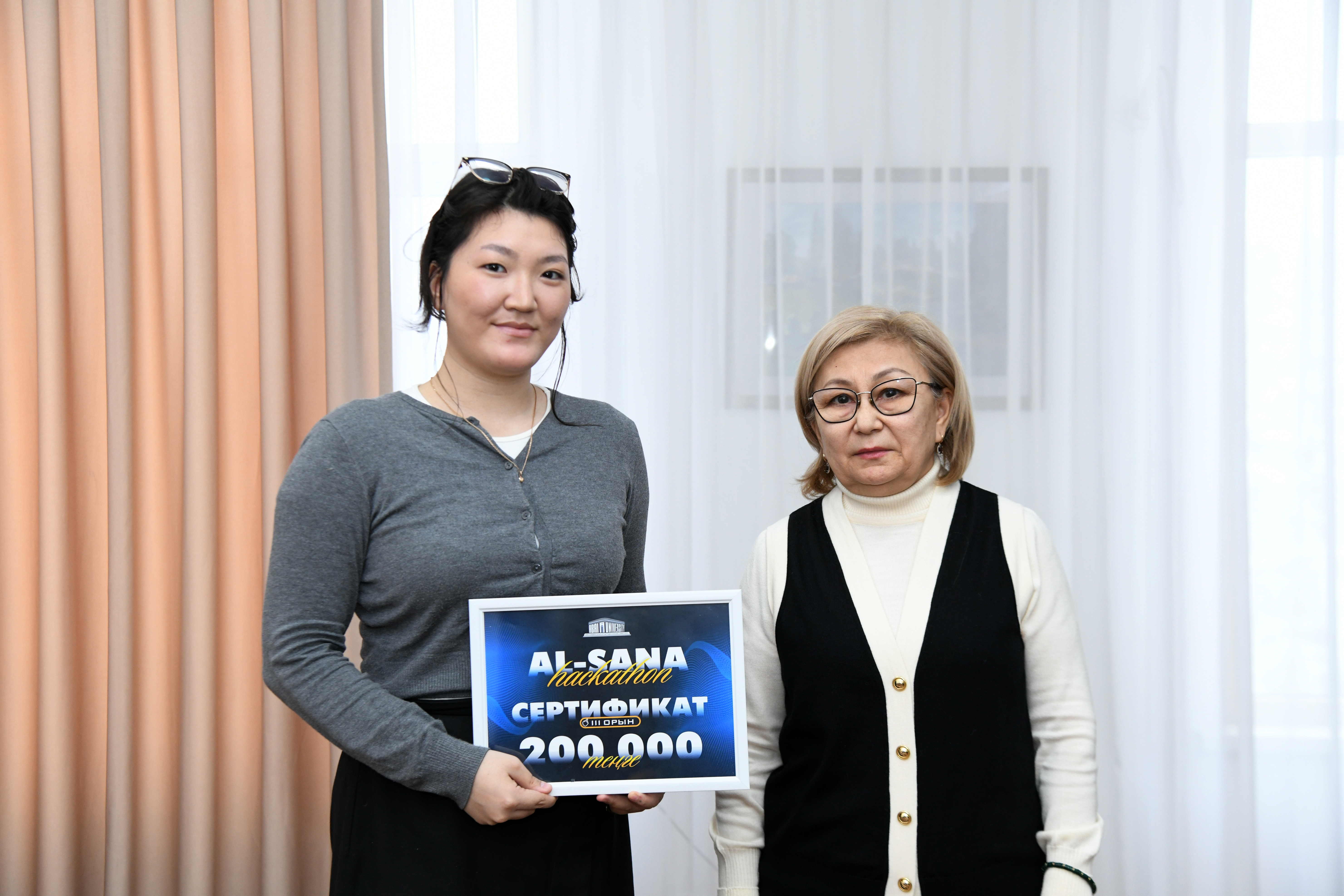The AI-Sana program provides for the development of students skills in the field of artificial intelligence. Thus, it is aimed at increasing the potential of the national economy and supporting technological entrepreneurship. The participants of the final stage of the AI Hackathon competition presented such scientific projects as "ABAI FUTUREAI", "Mentor", "Unitalk", "PortAI". For example, the program "ABAI FUTUREAI" contains biographies, parables, poems, edifications and lectures on Abai studies by the great thinker Abai Kunanbayuly. A video clip has been prepared based on the poet is biography, and the words of edification are written in Kazakh, Russian, English, and Chinese.